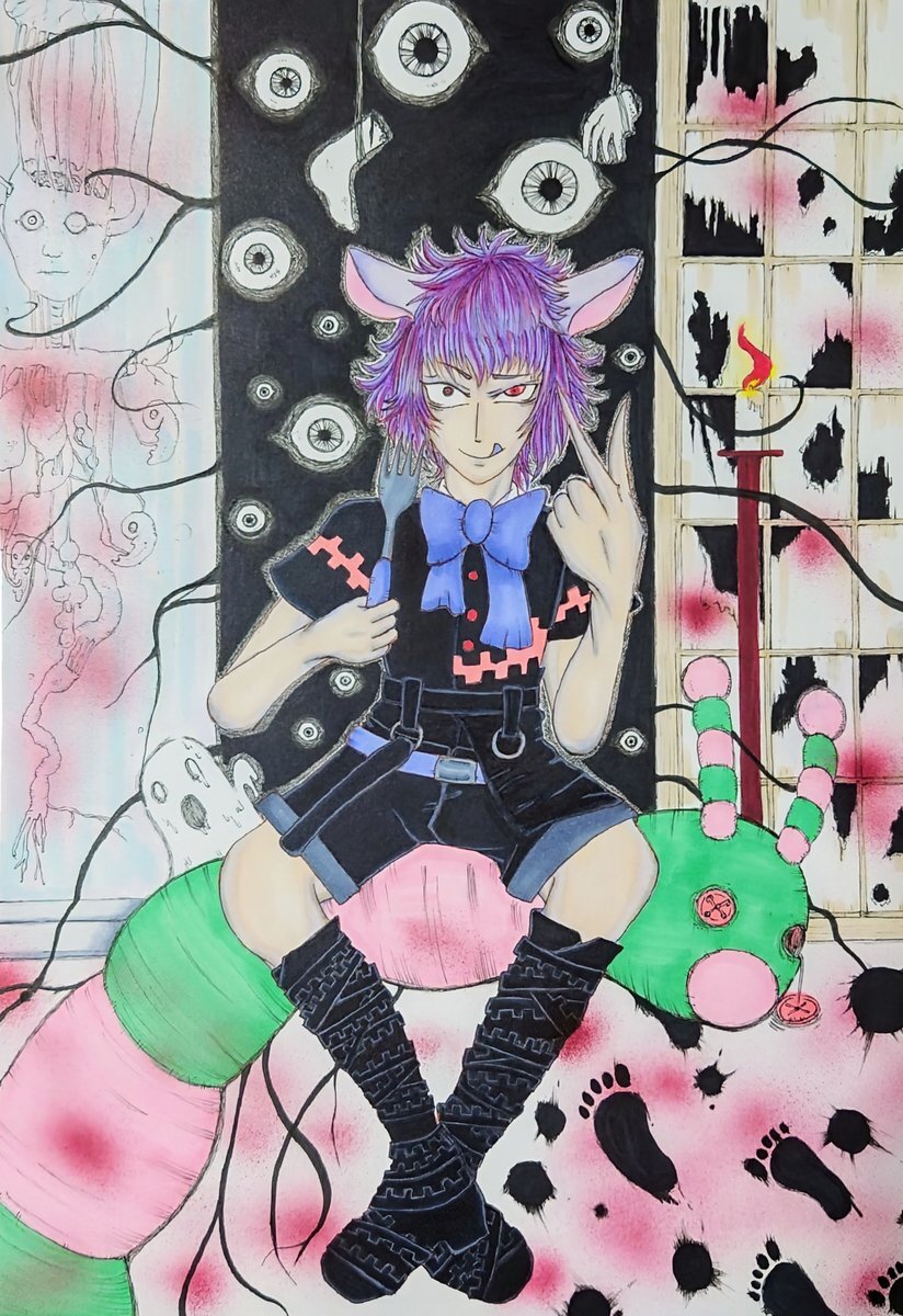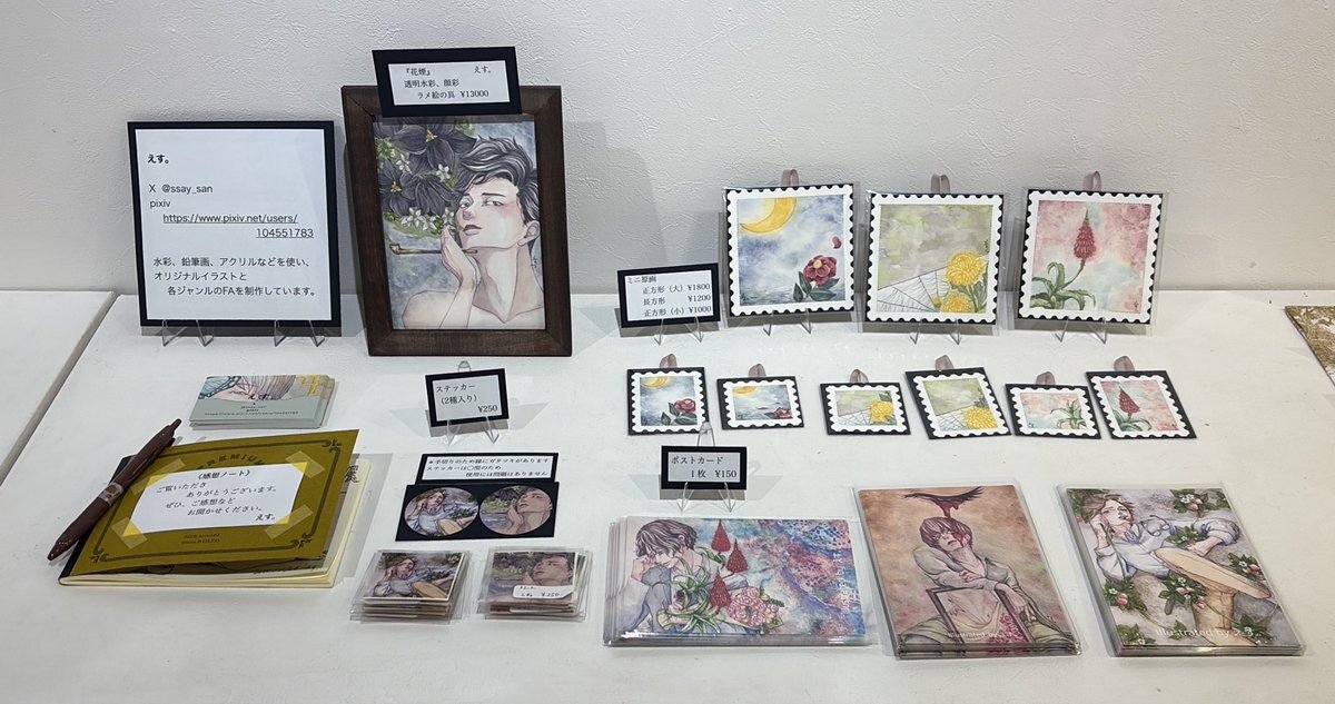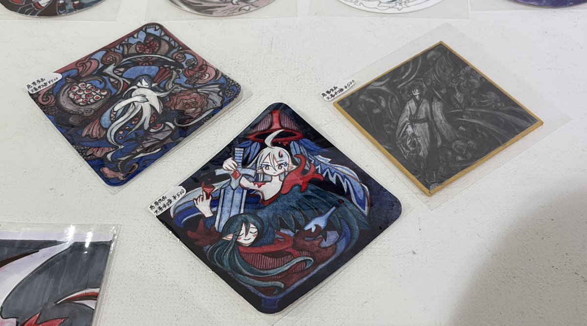 #悪夢展AS 出展作家紹介 腹ペコいくすさん @HarapekoIX 妖しさが魅力的にうつる作品たち。尺八様やメリーさんは怖い話でもご存じの方も多いはず。額装作品の他ポストカードやステッカーをお手元に置いて楽しむことも出来ますね。 pic.x.com/P8EuMx7dCS
