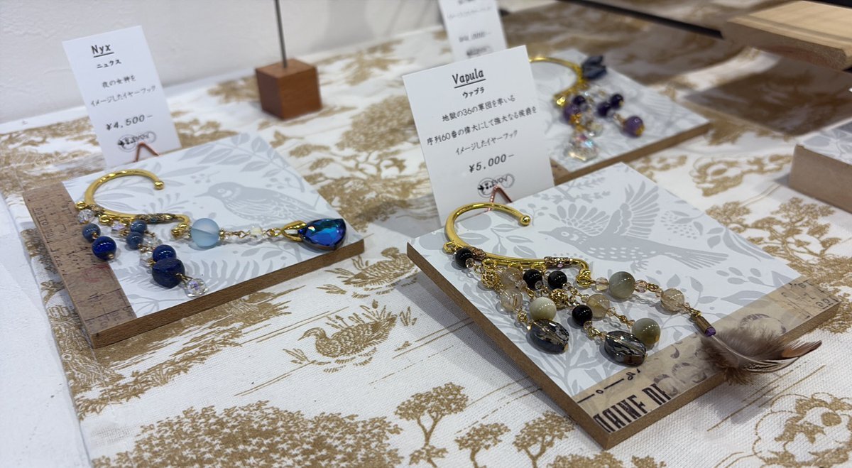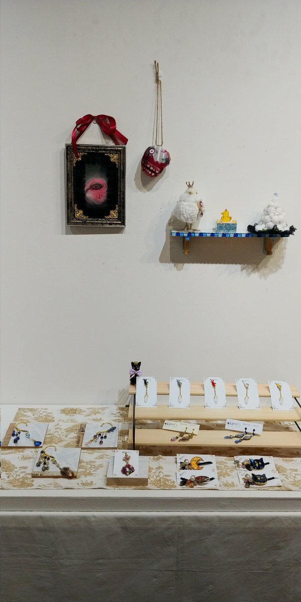 #悪夢展AS 出展作家紹介 EVO√さん @Evo_piyolina アクセサリー作品でのご出展です。 鉱石などを用いた華やかなアクセサリーたちと、視線が気になる作品たち。悪い夢から護ってくれそうな雰囲気がありますね。キラキラしているので夜のお出掛けにもピッタリですね。 pic.x.com/nKWdSH0oUA