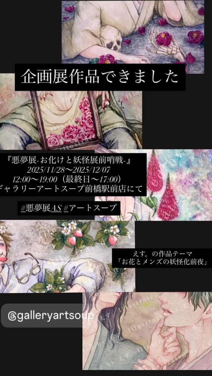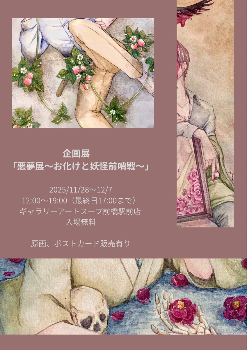 【企画展に参加します】 『悪夢展-お化けと妖怪展前哨戦-』 2025/11/28〜2025/12/07 12:00〜19:00(最終日〜17:00) ギャラリーアートスープ前橋駅前店にて #悪夢展AS #アートスープ