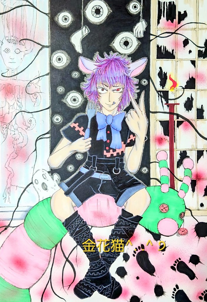 完全に通販登録忘れてて今速攻で登録 _( _´ω`)_フゥギリギリ… ちなみに今頃、メインビジュアルの獏夢描くの慣れて来てこの癖っ毛毛量小僧慣れました #悪夢展AS #アートスープ #絵柄が好みって人にフォローされたい pic.x.com/Vr6GtPzoqc