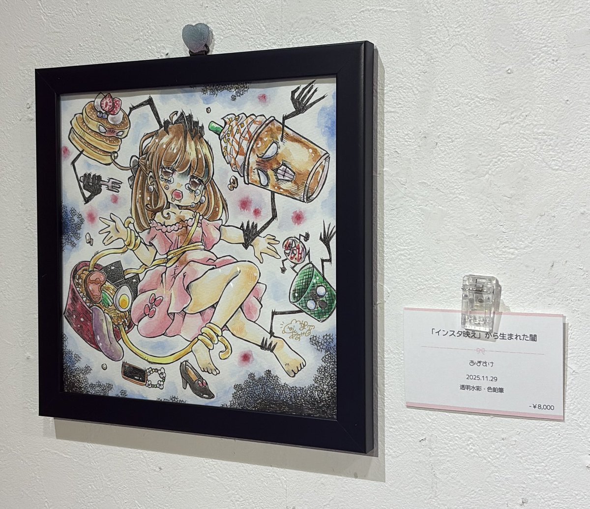 #悪夢展AS 出展作家紹介 あぽすけさん @pink_aposuke 食べものに襲われる「「インスタ映え」から生まれた闇」、取るのも取られるのも代償が大きそうな「マウント」、夢でも現でも中々の悪夢かもしれませんね。 可愛らしい作品の中に毒が光りますね。カゴの中の作品は無料配布とのことです。 pic.x.com/BoV3fnKcxw