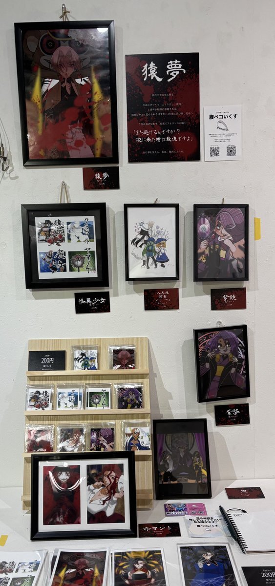 そんな訳で? 搬入完了しました! 今回のメインは猿夢の夢路ぱっぱです。 その他創作の怪異と妖怪達を置きましたのでご覧になってください。 明日、11/28より #悪夢展AS pic.x.com/S2L7In8Mhp x.com/harapekoix/sta…