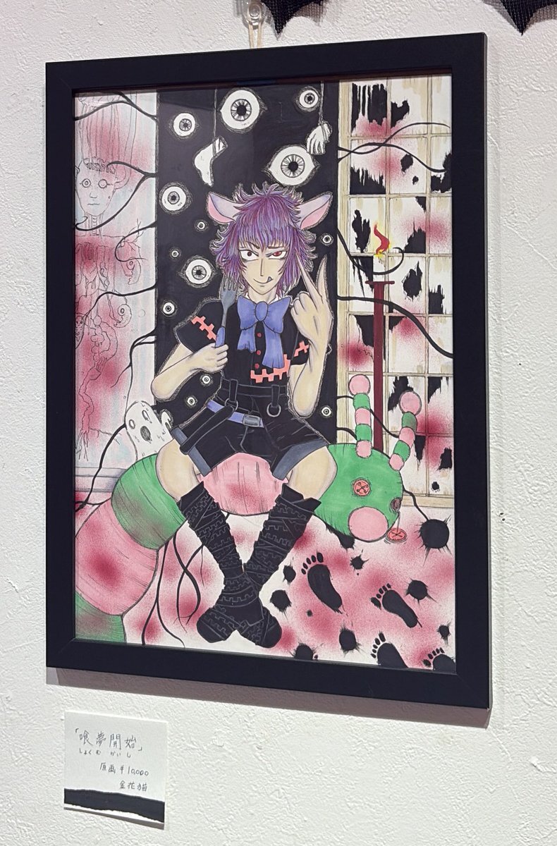 始まりましたฅ^•ω•^ฅ✨ 今日は風が強いので気を付けてご来場して下さい(*・ω・)*_ _)ペコリ 疲りみが酷くて今日は行けそうにない 背中がバリ痛い(ᐡ ̥_ ̫ _ ̥ᐡ) ఇ #悪夢展AS #アートスープ #お布団とお友達からぬけだせぬ pic.x.com/14AXQVYG46