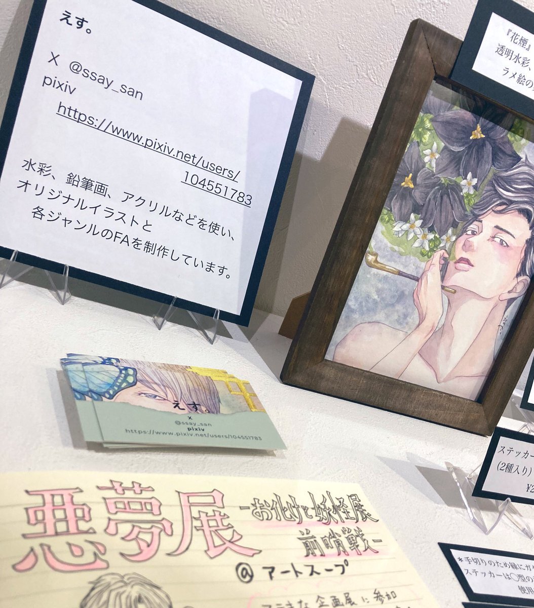 #悪夢展AS #アートスープ 搬入完了しました。 展示期間は 11/28〜12/7です✨ 名刺はフリーでお持ち帰りいただけますし、感想ノートも置いてあるので是非ご来場の際は一言感想をいただけたら嬉しいです✨1ページ目、描いておきましたw pic.x.com/qm2Cd9znbw x.com/ssay_san/statu…
