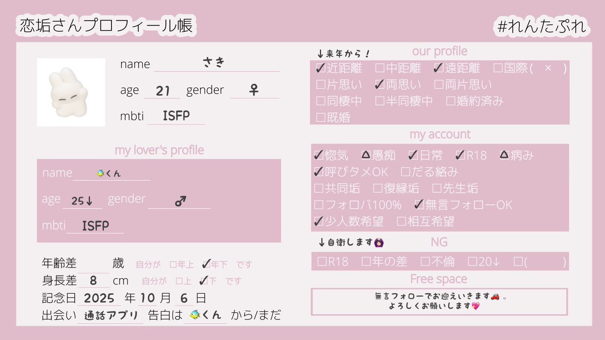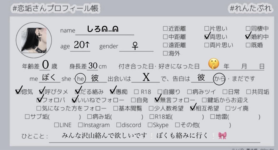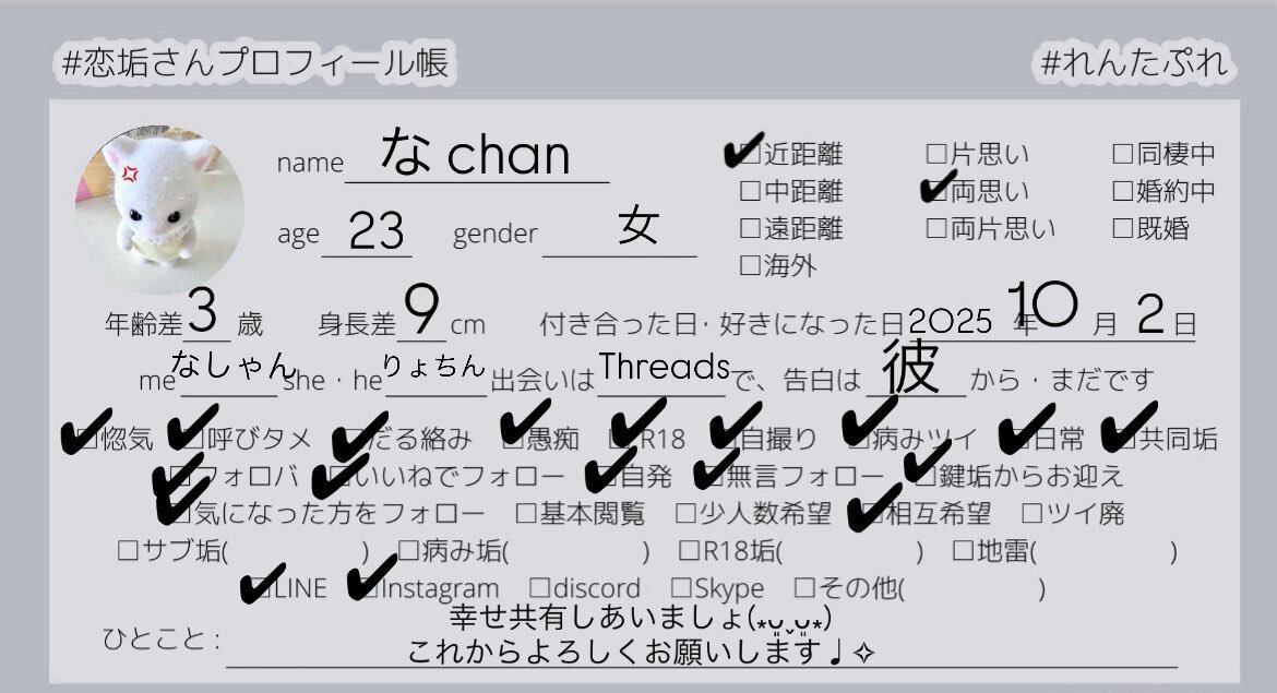 🏷️ ᵗᵃᵍ 惚気あえるお友達探し🤲🏻💖 ♡ or ↻ で @_Oos4kioO_ からお迎え ໒꒱⡱ #恋垢 #恋垢さんと繋がりたい #恋垢さんと仲良くなりたい #惚気垢 #惚気垢さんと繋がりたい #恋垢プロフィール帳 #れんたぷれ pic.x.com/WwySX1knCn