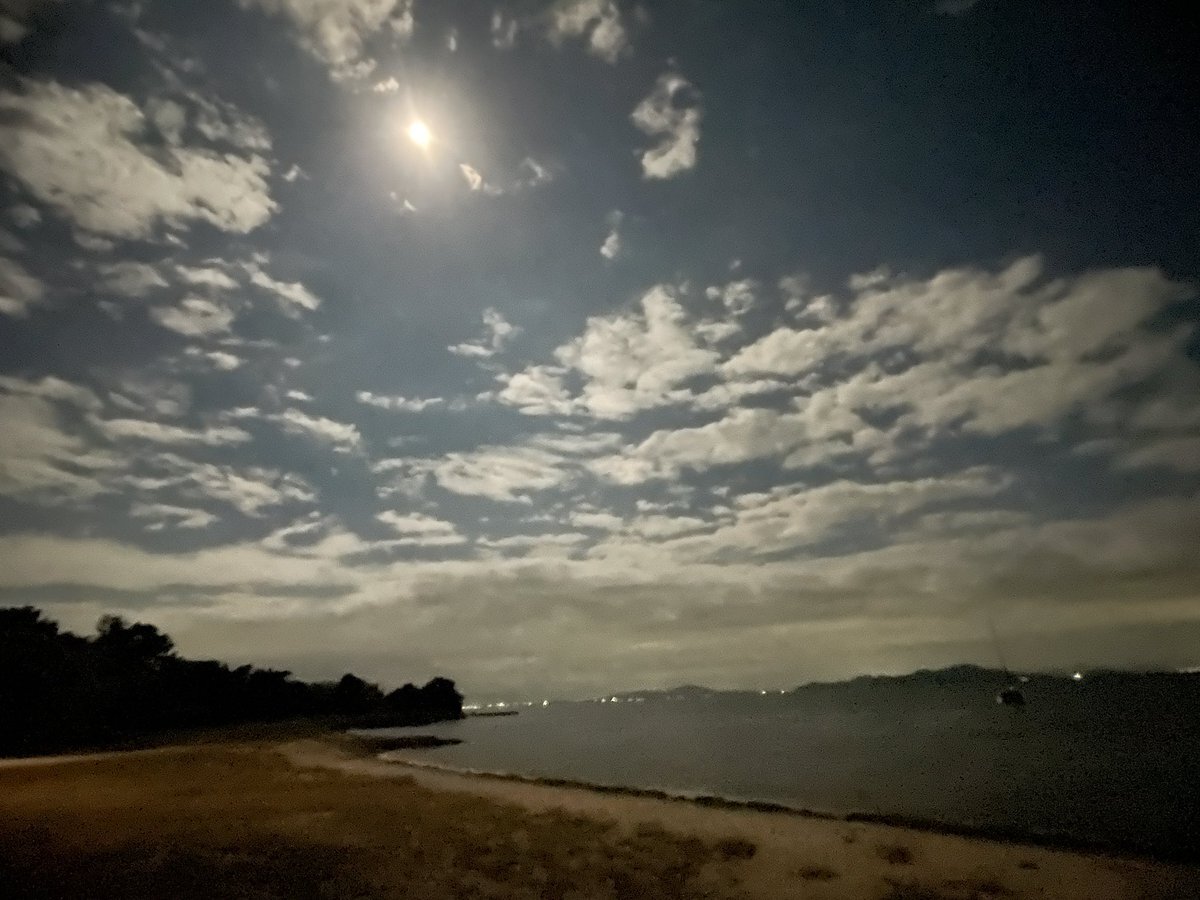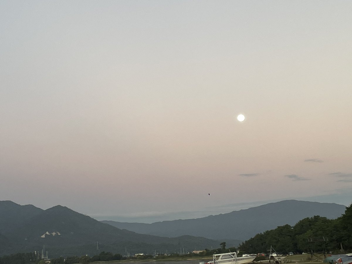 月撮ってたら鳥の群れが通った! 拡大して見たらサギっぽい!!