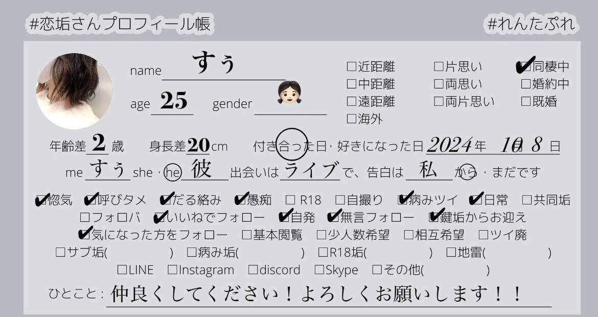 今日からはじめました!!! 惚気合えるお友達探してます! 仲良くしてください!! よろしくお願いします!! #惚気垢 #恋垢 #れんたぷれ #恋垢さんと仲良くなりたい #恋垢さんと繋がりたい #恋垢プロフィール帳 #惚気垢さんと繋がりたい #惚気垢さんと仲良くなりたい pic.x.com/MG7K751zS5