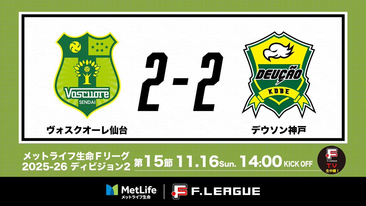 ✅試合終了🔥 🏆#メットライフ生命Fリーグ 2025-26 ディビジョン2 📍第15節 📅11.16 14:00 🆚仙台 2-2 神戸 🏟本山製作所青葉アリーナ 📺fleague.stores.play.jp/lives/3a559349… 【男女全試合配信→毎節1試合無料✨】 Fリーグ・女子Fリーグ観るなら #FリーグTV #フットサル #ついてこれるか #感動が加速する pic.x.com/uihXKBwnao