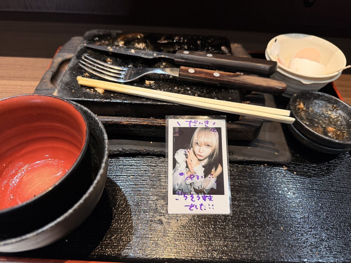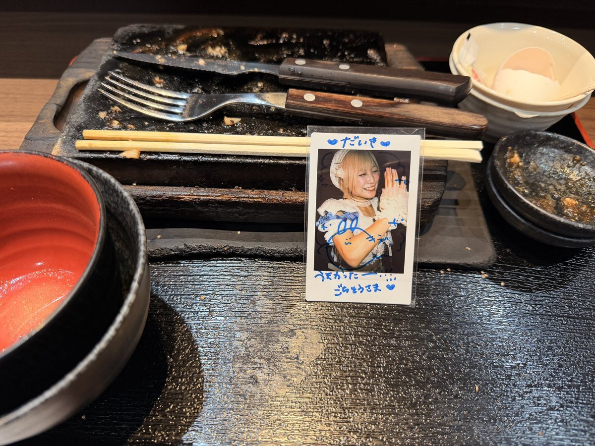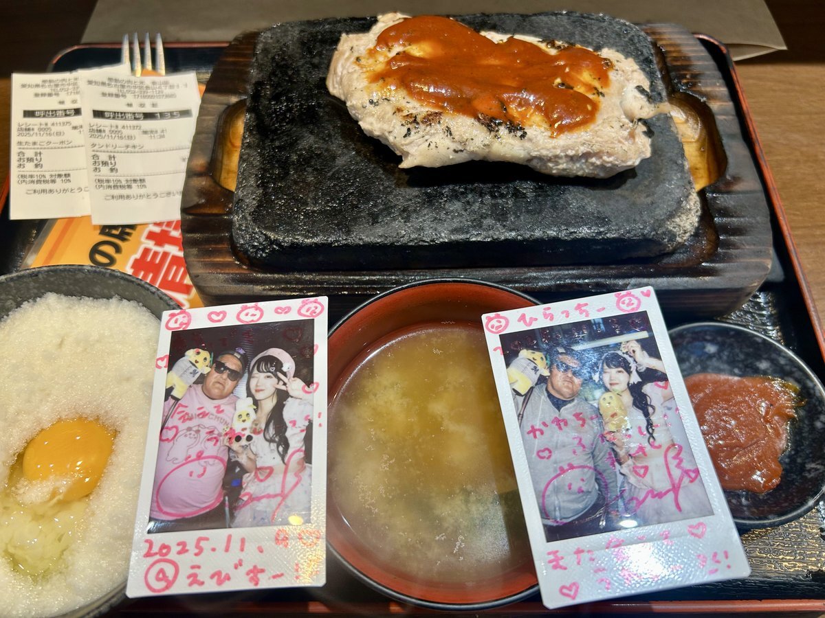 💙スタバなう💙 うみちゃん編   少し前の 感動の肉と米💙 うみちゃん(チェキ)と一緒に美味しくいただきました💙 ご馳走様でした💙 うみちゃん、遅くなってごめんね🙏 #ハラミステーキ #チキンステーキ #感動の肉と米 #あみやき亭系列 #スタバなう #推し活 #双葉うみ #うみちゃんさん pic.x.com/YJgcxSX4jP
