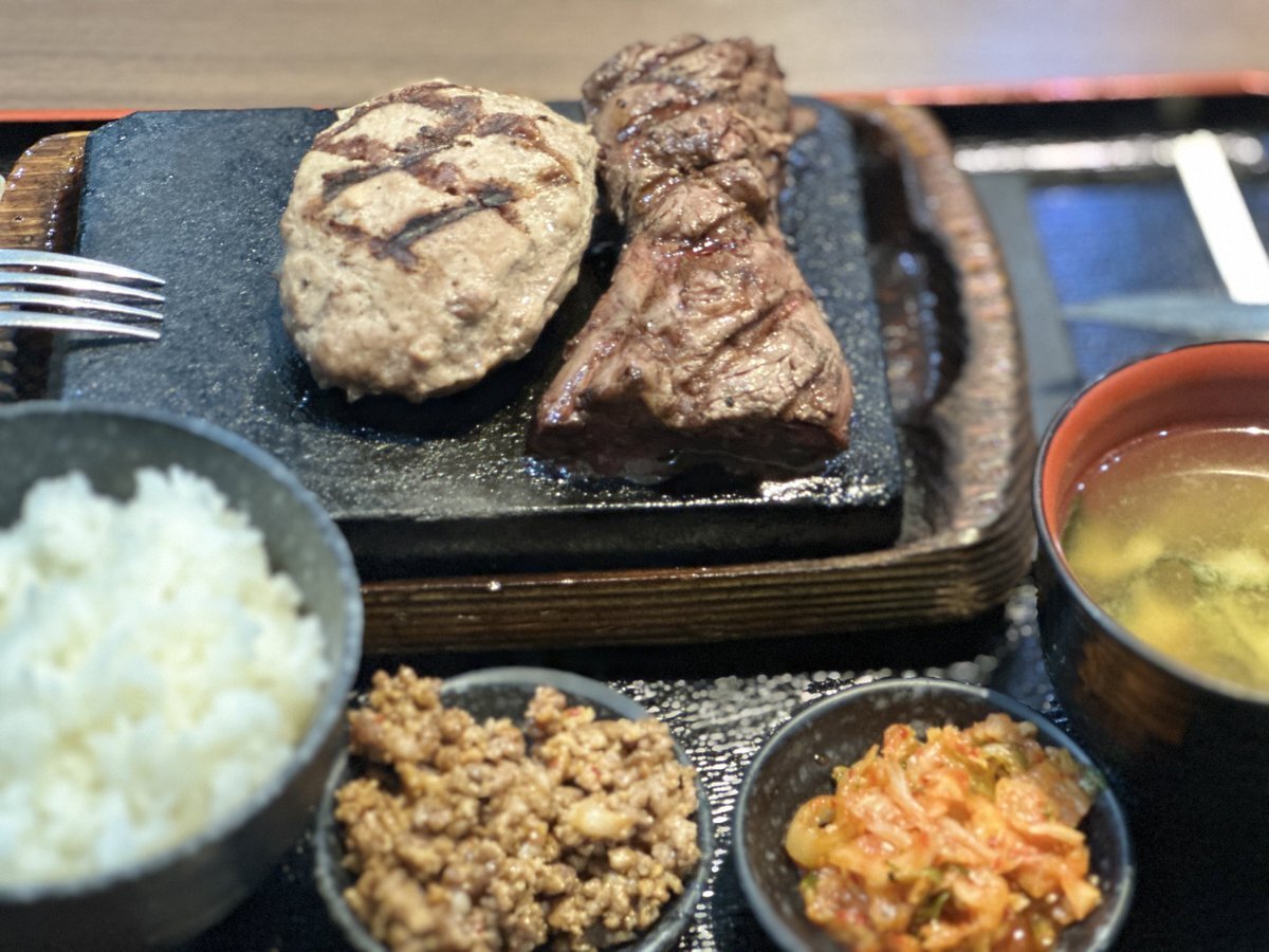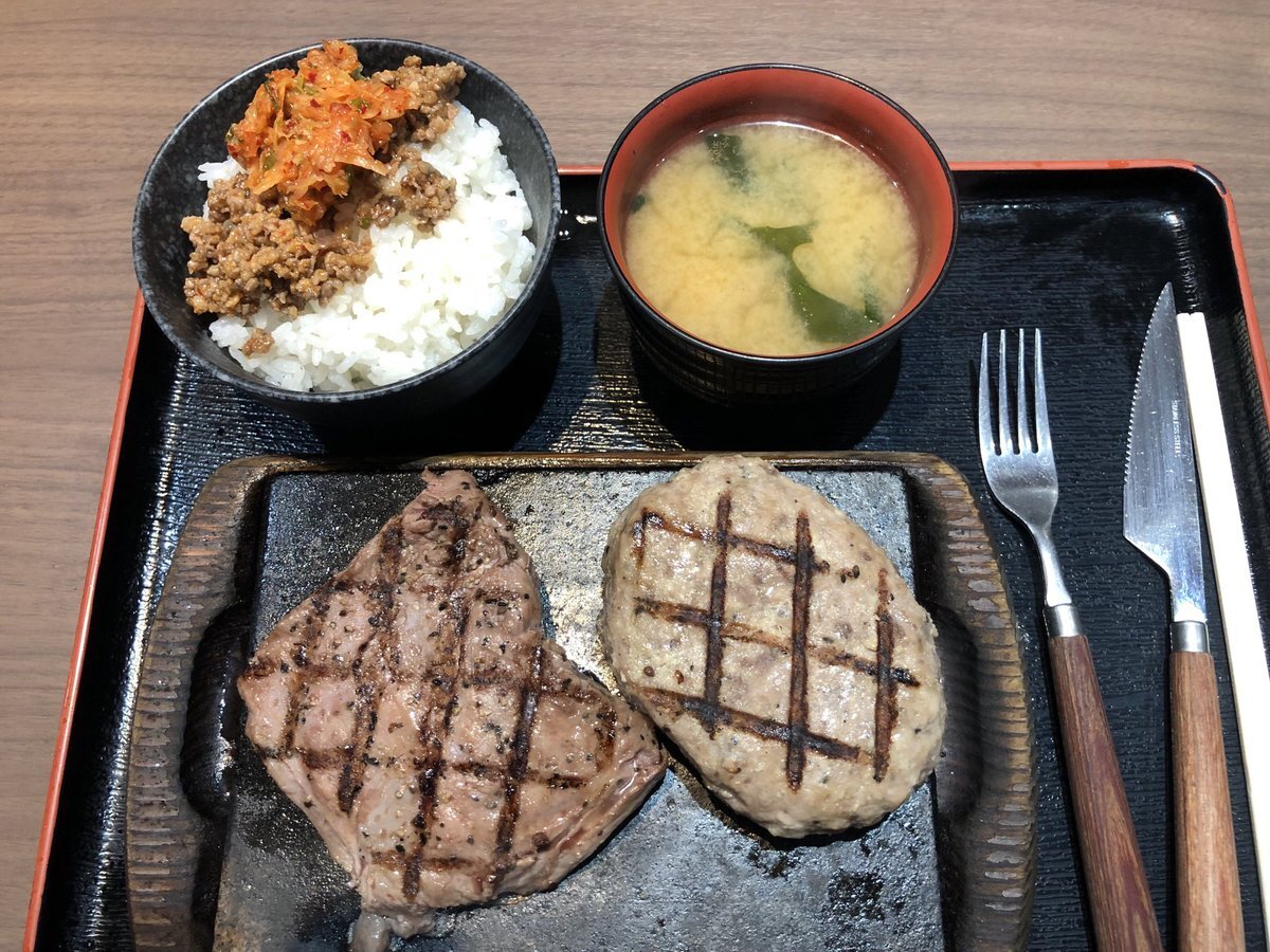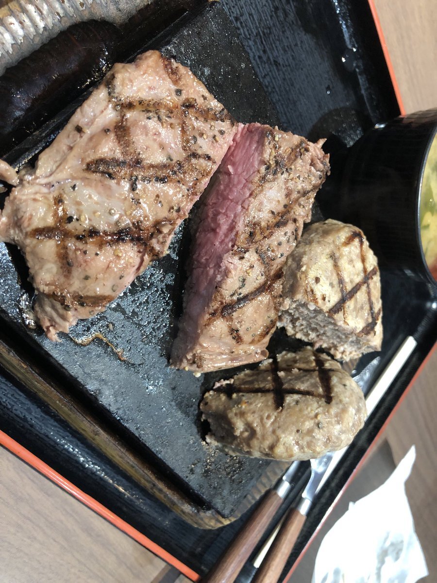 #感動の肉と米 ロース+ハンバーグコンボ 偉い方のお付きでコチラへ 肉めっっっっちゃ美味い‼️柔らかくてジューシー🥩 今まで来なかったことを後悔した😂 そして、米が美味い‼️米をよそる時、機械でボロボロと出てくるが、その様子とは裏腹にめちゃくちゃ美味しい😋 大盛4杯も食べてしまった😅 pic.x.com/w7ENpCz7b9