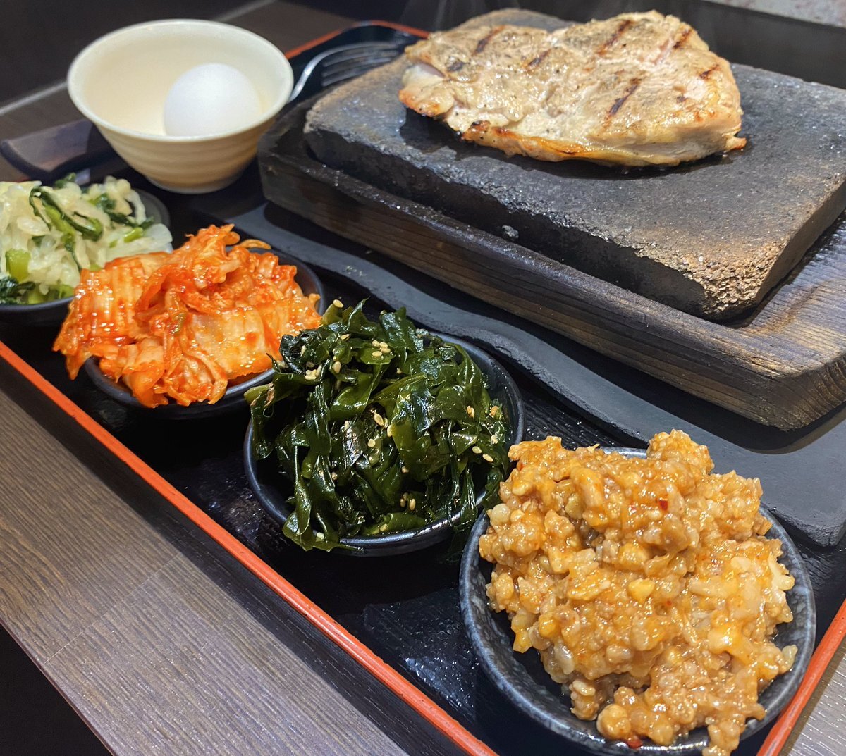 #感動の肉と米 食べすぎました( ´・∀・` ) ヴォルケーノカルビ1.5倍(220g?) ハーフロースステーキ(90g?) 卵2個 キムチ ライス中(150g?)2杯 お味噌汁 お米高いのにおかわり自由だし お味噌汁もご飯のお供も 全部おかわり自由🍚 そして写真は撮り忘れました😂