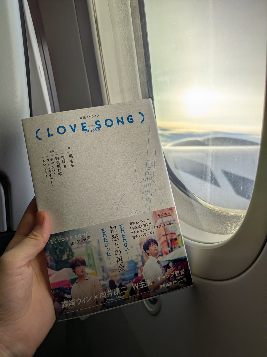 𓊆 #映画ラブソングを語り合いたい 𓊇 🇹🇭タイに行く飛行機で読んでる カイ📷️のターンの度に涙😭 映画では2人の物語の一部しか見れてなかった🥺カイの態度の理由、本当はそんな気持ちだったのね〜って知って、もっと2人を好きになる🌻🌻・* #映画ラブソング #感想投稿キャンペーン @movie_lovesong pic.x.com/9tsabDIxmD