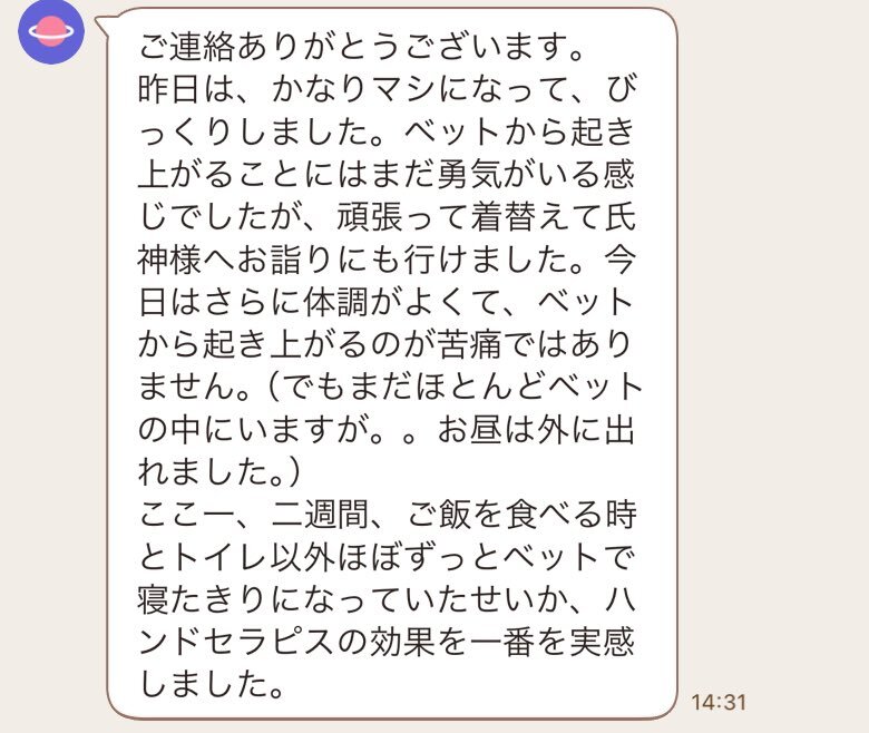 起立性調整障害、慢性疲労症候群と医師から言われた方です 嬉しいご報告 施術するごとに良さを感じていただけてます! #ハンドセラピス #慢性疲労症候群 #起立性調整障害 pic.x.com/zUiZkIFmng