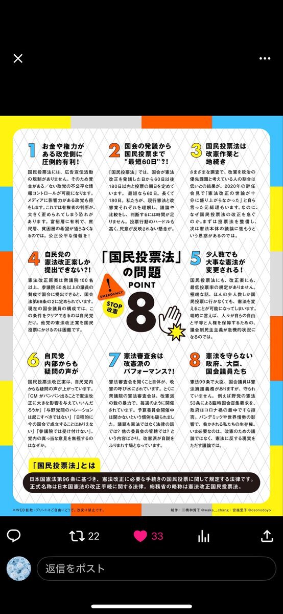 憲法を権力者に都合よく変えられたら国民は奴隷です 国民投票は資金力のある改憲派が圧倒的に有利⚠️ なので改憲発議されたら手遅れ、お終い 国民投票は罠!国民投票反対‼️ #改憲発議阻止デモ #憲法審査会今すぐ解散 #緊急事態条項でワクチン強制 pic.x.com/tOiGOXD8dg x.com/nomem44/status…