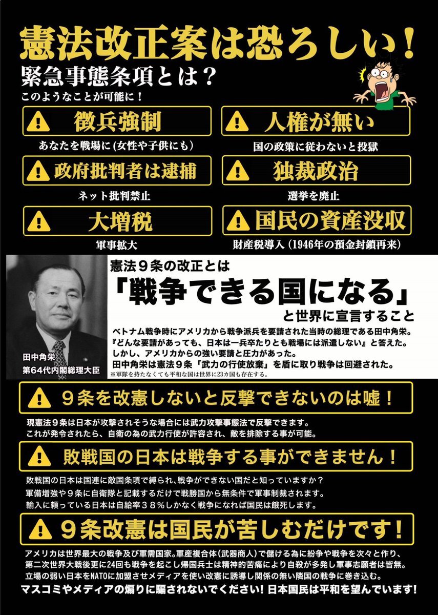 今、世界中が緊張状態で、いつ第3次世界大戦が起きてもおかしくない。 憲法9条を盾に和平を!対話を!! 憲法改正は不要。緊急事態条項は個別法で対応可。 武力攻撃事態法があり、自衛隊は明記不要。 裏金自民党に騙されるな💢 #憲法改悪は戦争への誘い #憲法改正反対 pic.x.com/Xdf6mN2Gg0