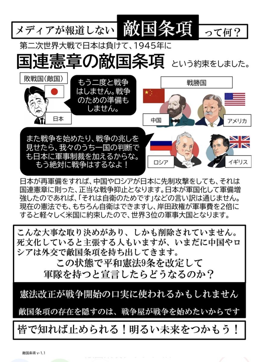 #憲法改悪は戦争への誘い #無法者に改憲発議の資格なし @kantei 原発・敵国条項がある日本は実質戦争が出来ない国です。 田中角栄元総理大臣は、9条を盾にアメリカの要求を断りました。 9条はそれだけ力を持っているのです! 国民を守らない裏金自民党は 解体しろ💢 pic.x.com/tH4BrKiLy7