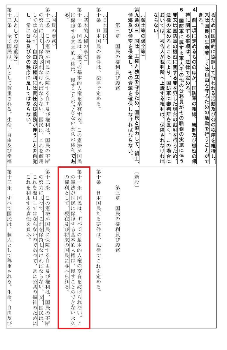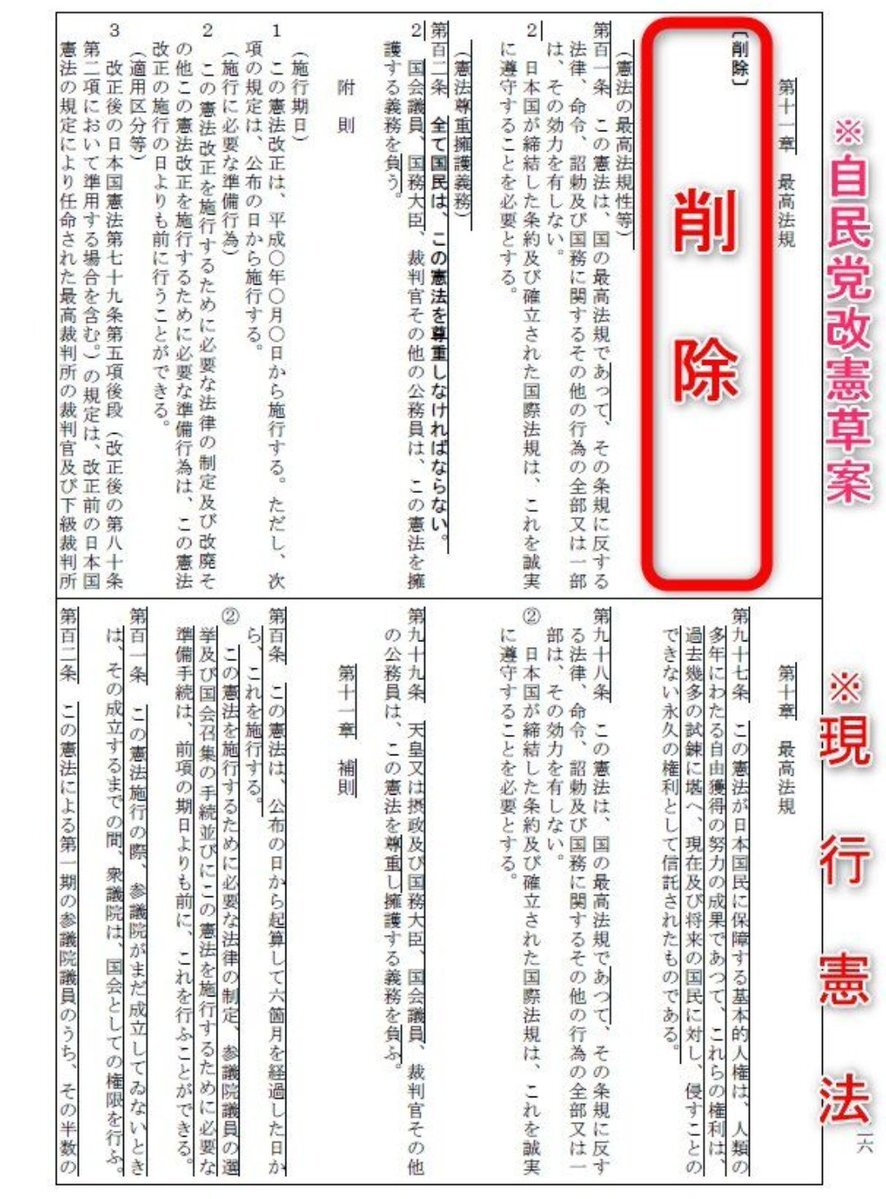 基本的人権の尊重は、全ての人が人間らしく生きる為に、生まれながらにして持つ、侵すことの出来ない永久の権利です。 この永久の権利を奪うのが、憲法改正です。 『人間らしく生きる為』の権利を奪う改憲が、国民の為だと思いますか? #憲法改正反対 #改憲発議絶対させるな