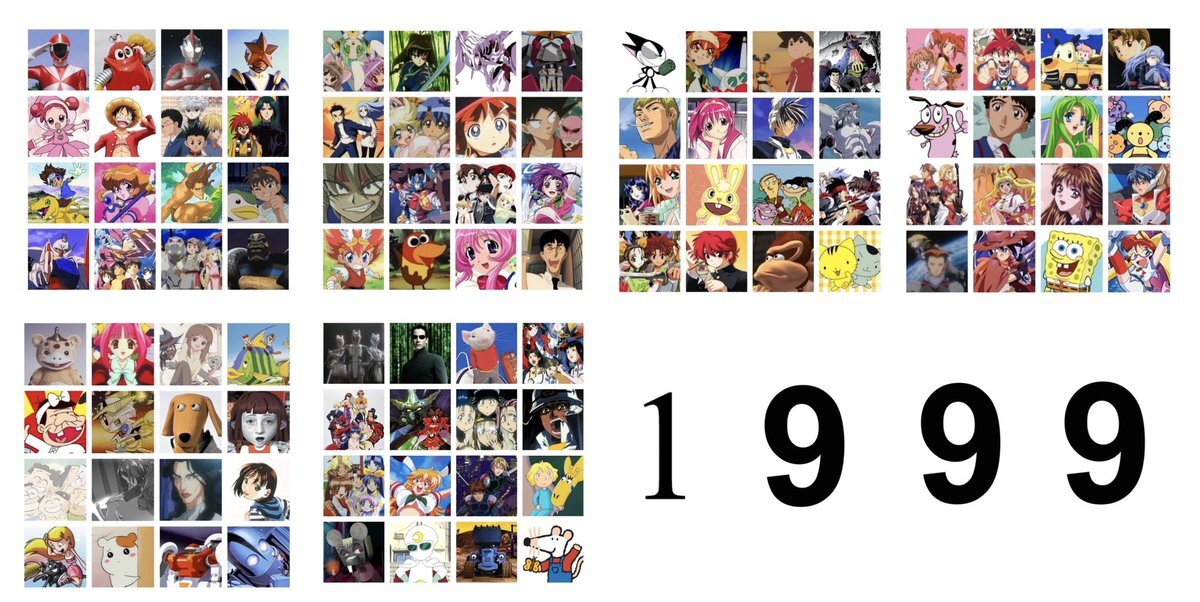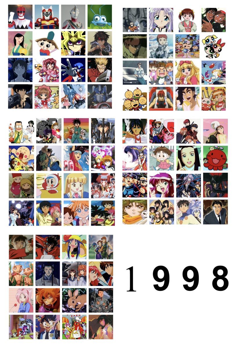 1996年~1999年 自分が幼少期時代の時。 99年辺りから直撃世代ですね。 アニメや特撮の技術が上がって、クオリティの高い作品が一気に増えましたね。 さて、次回はついに2000年代へ… #1996年 #1997年 #1998年 #1999年 #懐かしいと思ったらRT #アニメ #特撮 pic.x.com/XRS7nMkZAA