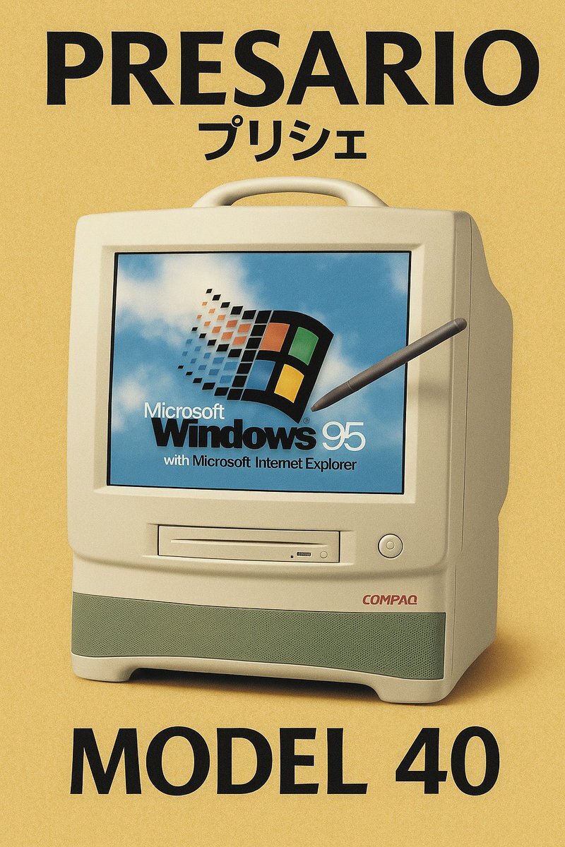#懐かしいと思ったらRT #ネット老人 win10サ終ってことで、なんとなーく人生で初めて使ったPCを思い出してた… 親のお下がり、富士通「プリシェmodel40」メモリ64mb… ネットサーフィンするぶんには当時は重くても気になんなかったなぁ (画像はGPT君で再現。だいたいこんな感じだった) pic.x.com/Wa3kjmQFKQ