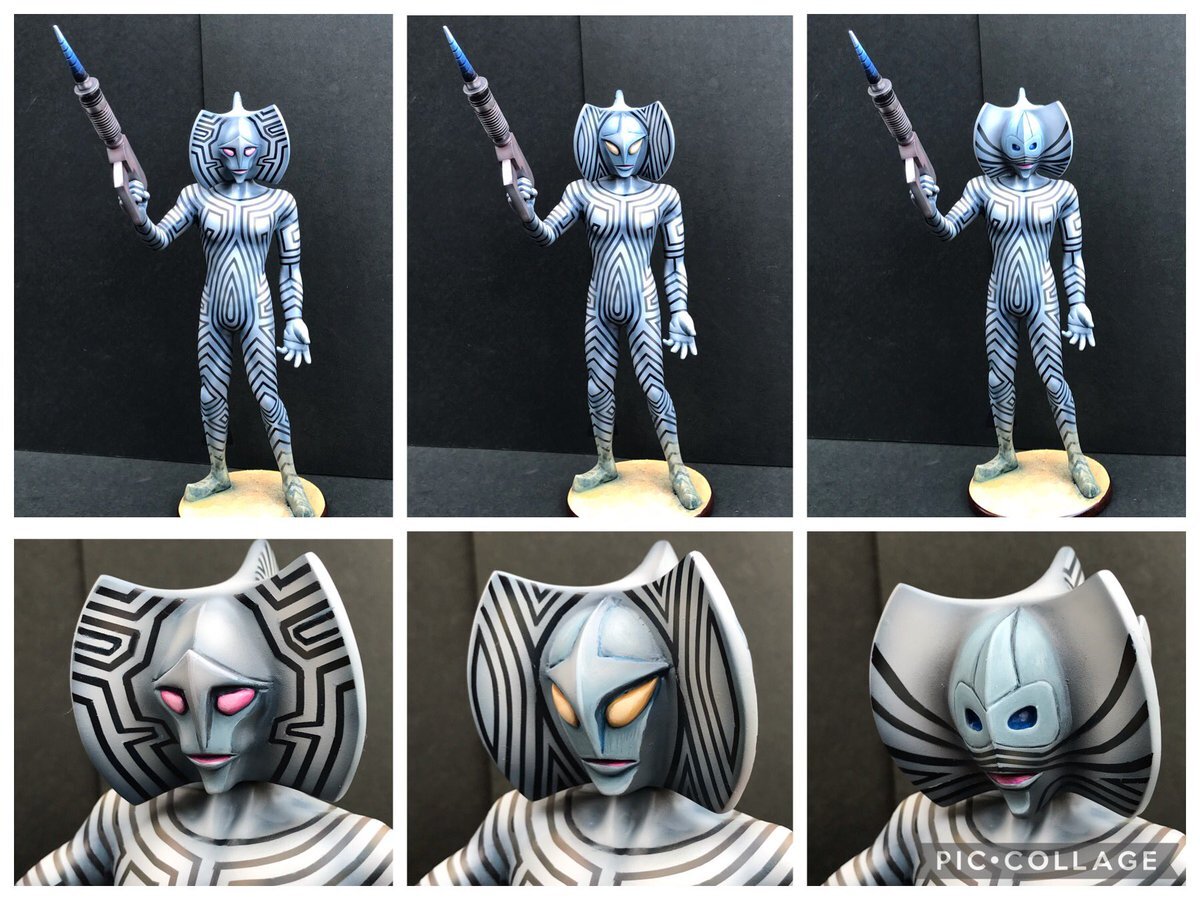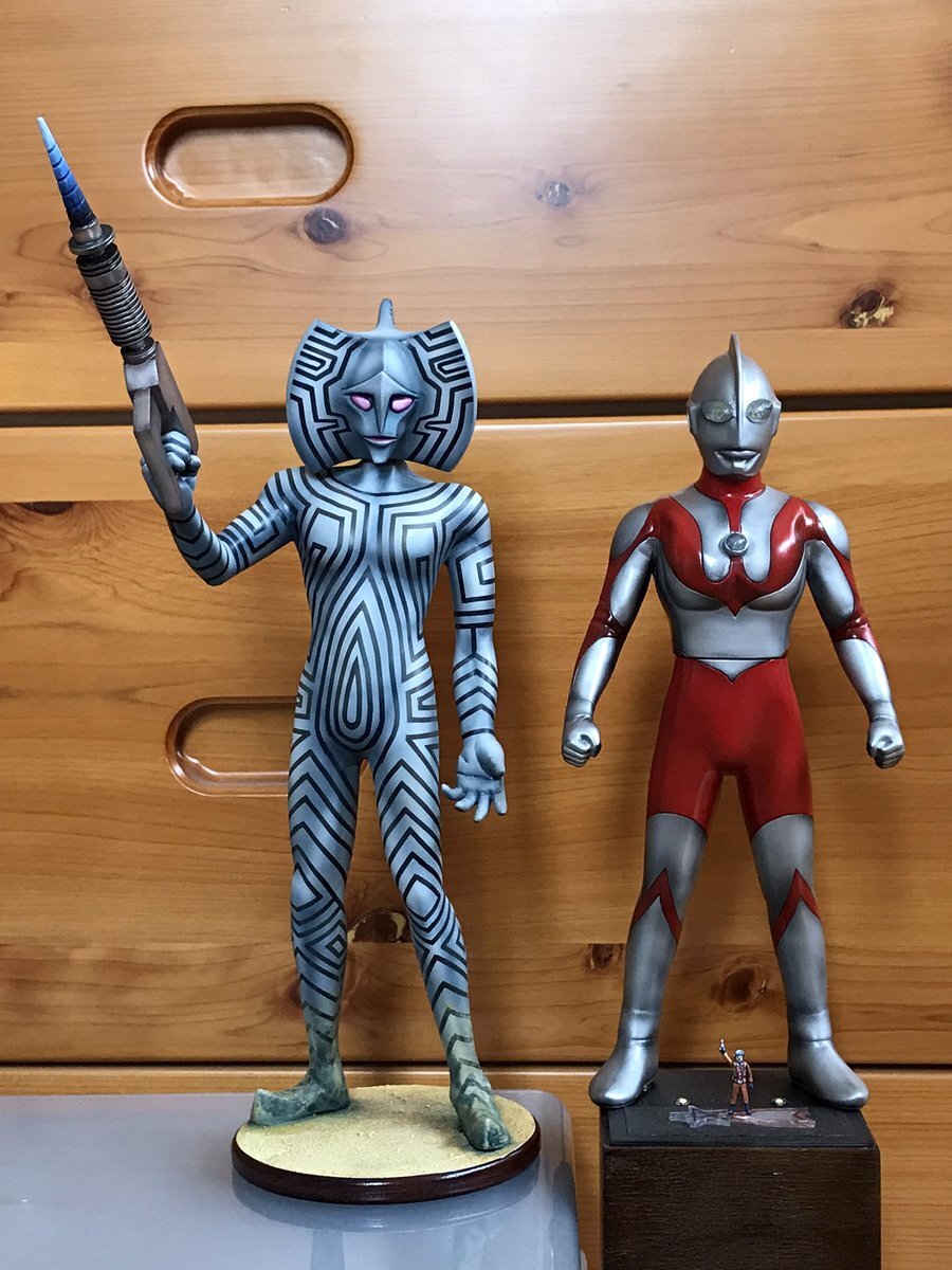 ダダ(成田亨オリジナル)完成! ソフビウルトラマンと並べたくて作りはじめて約1年、ようやく完成 ファンドによるフルスクラッチ 体はマスキングしてエアブラシ 筆塗りのように何色も重ねて明暗つけて体の凹凸を強調してみた 顔は筆塗りを追加 #ウルトラマン #シンウルトラマン #ダダ #成田亨 pic.x.com/9zLcFXRs8U
