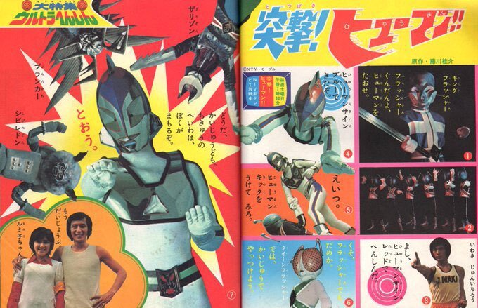 ㊗️突撃! ヒューマン‼︎ 50周年! 雑誌「幼稚園」掲載のヒューマン記事。幼児向けなので、中身は濃くないものの、やはり使用されているスチールは貴重! #突撃ヒューマン #成田亨 pic.x.com/WVCzpjqk8s