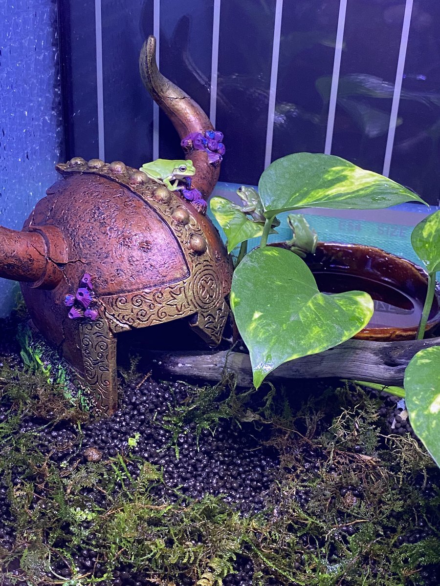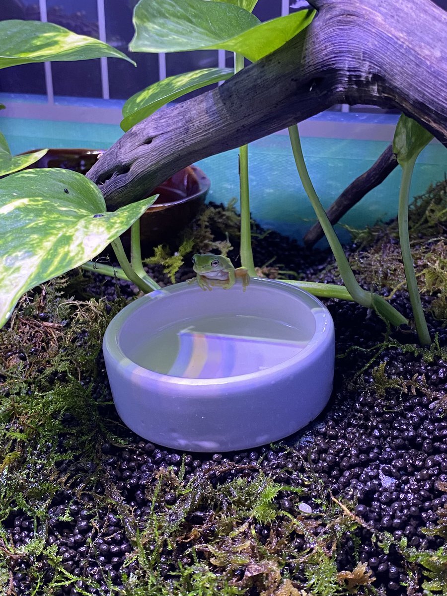 この時期のカエルさんは溺れやすいという事で、ソイルで少し丘を作りました☝️ ピトピト登ってしまうけど、自分で降りてくので大丈夫かな😅 #イエアメカエル #成長の記録 #上陸大作戦 pic.x.com/fWuuMqIX4M