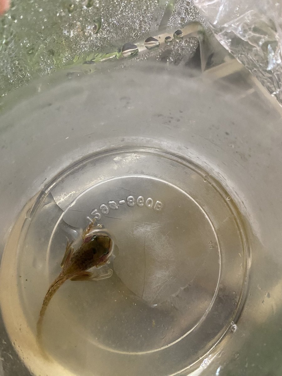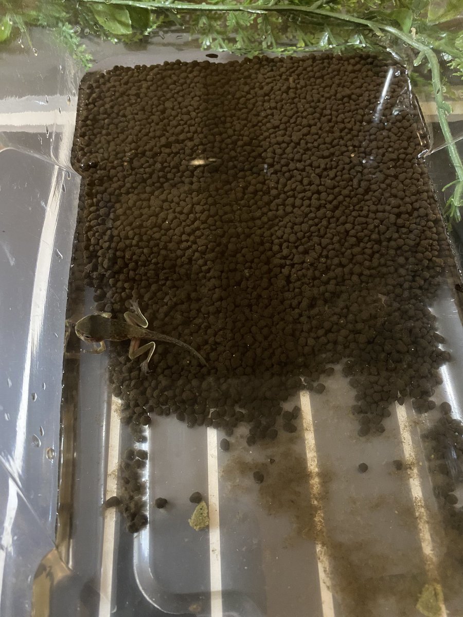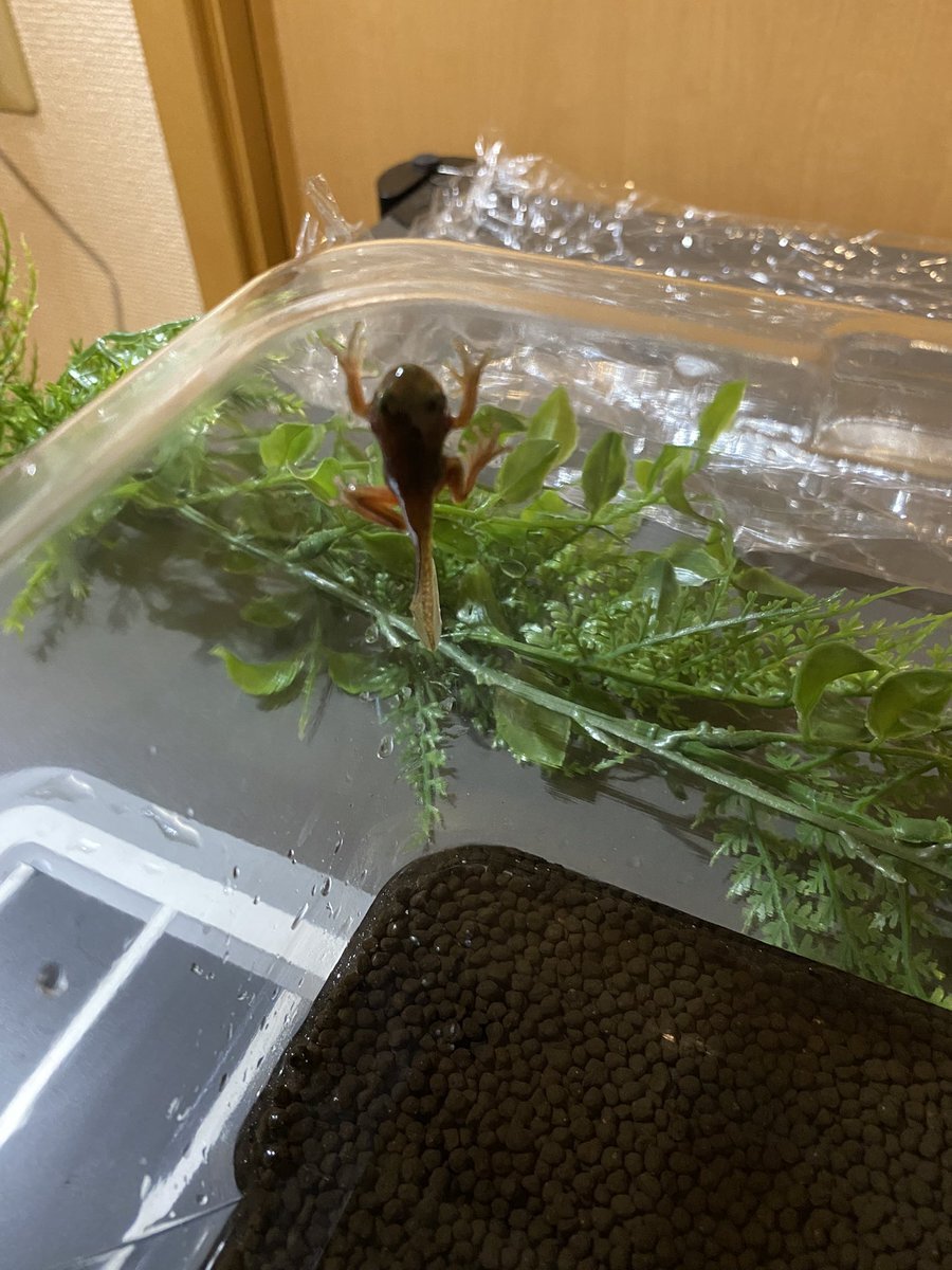 2号さん上陸間近🐸 昨日の夜片手だけしか出てなかったのに朝見たら随分とカエル化が進んでてびっくり😳 しっぽがどんどん短くなーれ🙌 #イエアメカエル #成長の記録 #上陸大作戦 #2号さん pic.x.com/GZfXIQIJMm