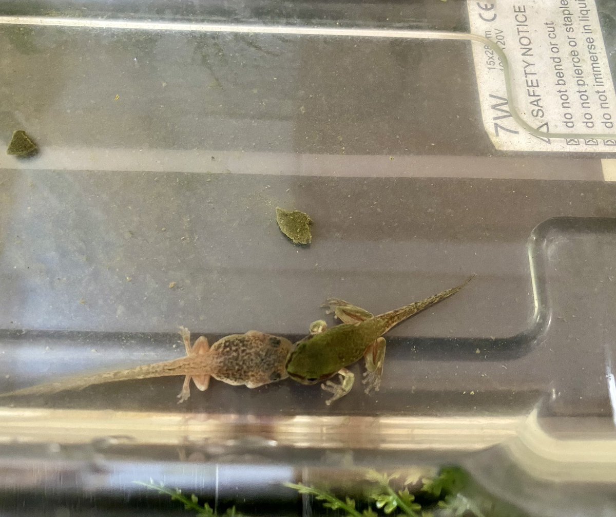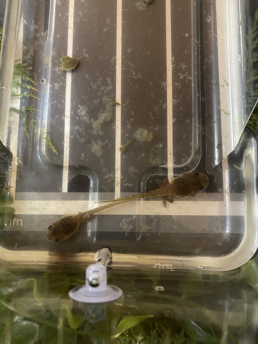 他の2匹はこんな感じ🐸 1匹は明日にでも手が生えそう🙌 あっという間に成長して、感動の毎日🥰 #イエアメカエル #オタマジャクシ #成長の記録 pic.x.com/EZfpAgGX3y