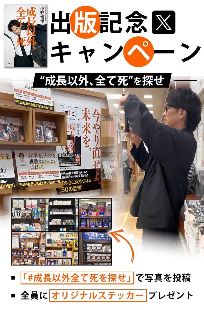 【プレゼントキャンペーン開催📕】 参加いただいた全員に「成長以外、全て死ステッカー」 (非売品)」をプレゼント! ✔️ルール ①書店で「成長以外、全て死」の画像を撮影 ②#成長以外全て死を探せ で投稿 ③リプ欄のGoogleフォームから応募 ランキング入り画像は別途特典有り🎯 みなさま、是非!