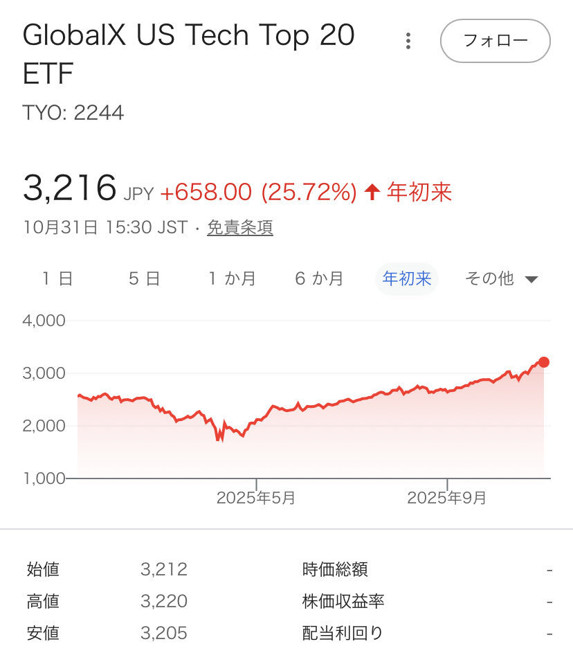 もし「成長ポートフォリオに米国テック大型を加えたい」「テーマ型ETFで手間を抑えたい」というなら、2244もおすすめ😄 #米国株 #テック株 #ETF #2244 #成長投資 pic.x.com/0YazEs0cOR x.com/moneyinfo_stoc…
