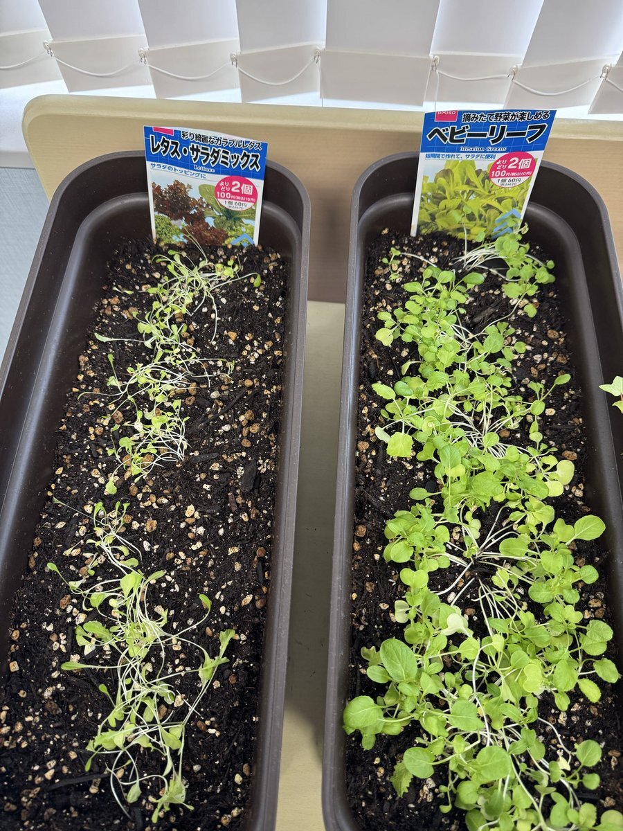 観察日記50日目 レタスミックスはまだひょろひょろ期まっただ中😂 日当たり改善したら元気になるのかな🤔 一方でベビーリーフはわんさか成長中🌱✨ この差はなんなんだろう…! 今日も見守ります👀💚 #家庭菜園 #成長日記 #cheero pic.x.com/M15GIaAdZs