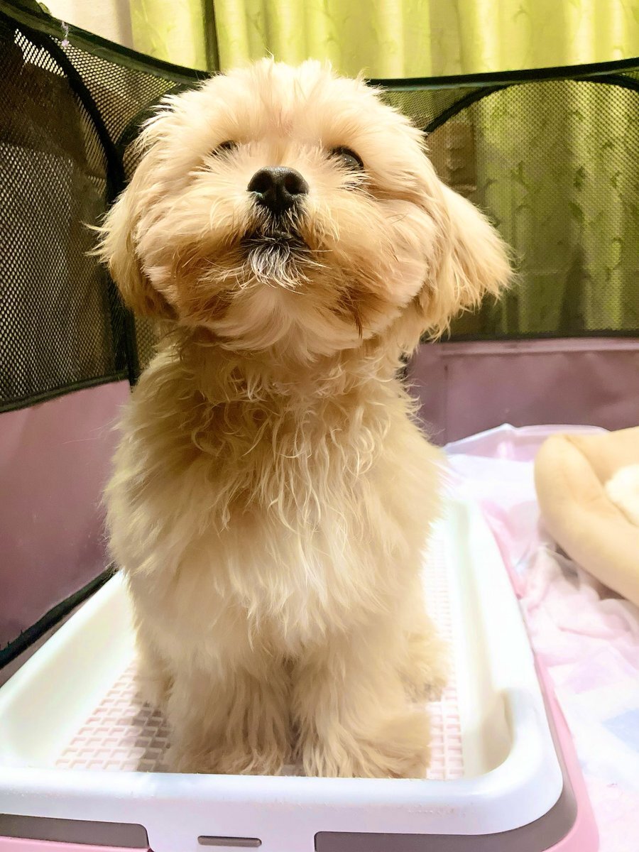 🚻で天を仰ぐ子のお口のちょびヒゲさえ愛おしい… #犬のいる暮らし #成長日記 pic.x.com/yNX8p57fpT