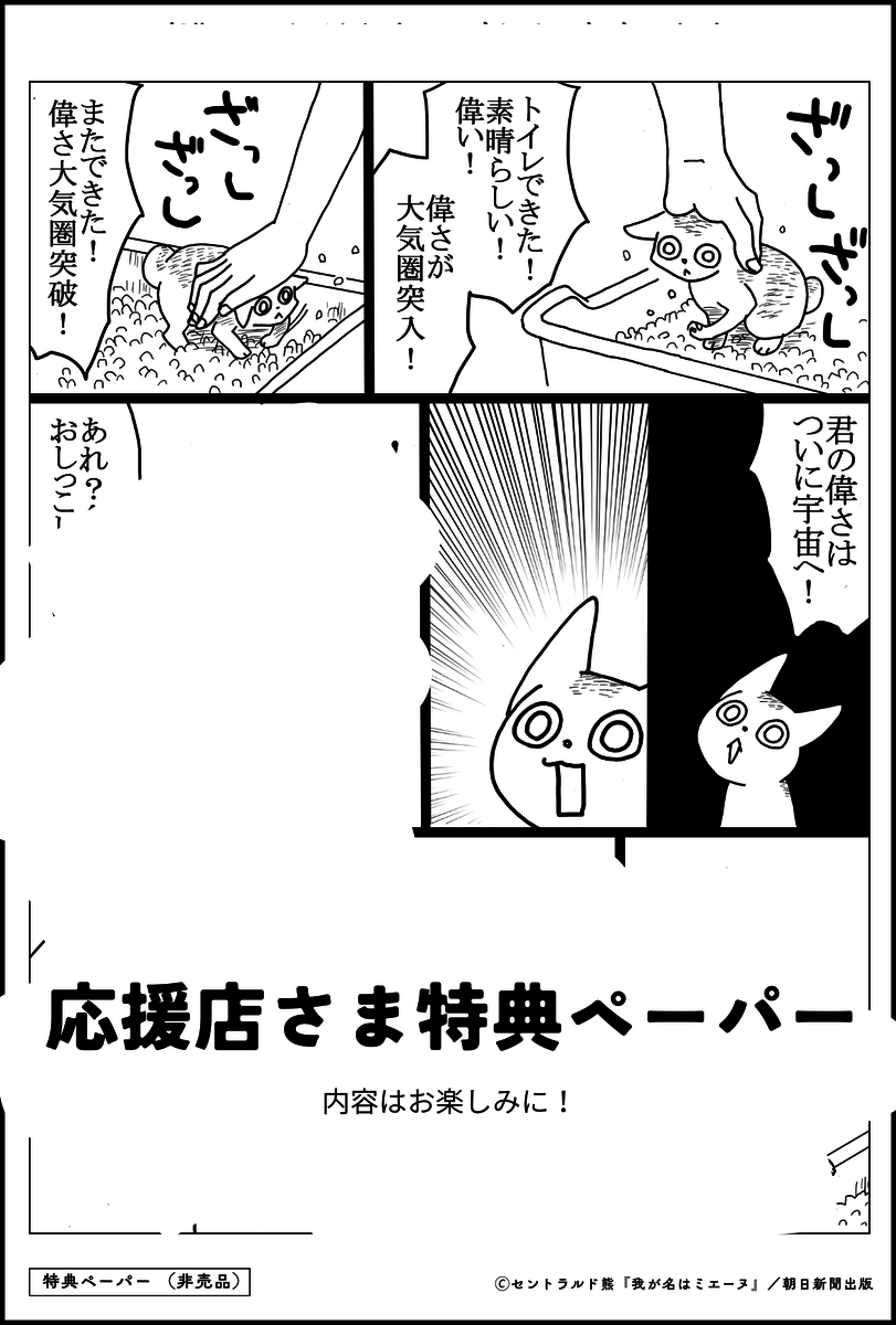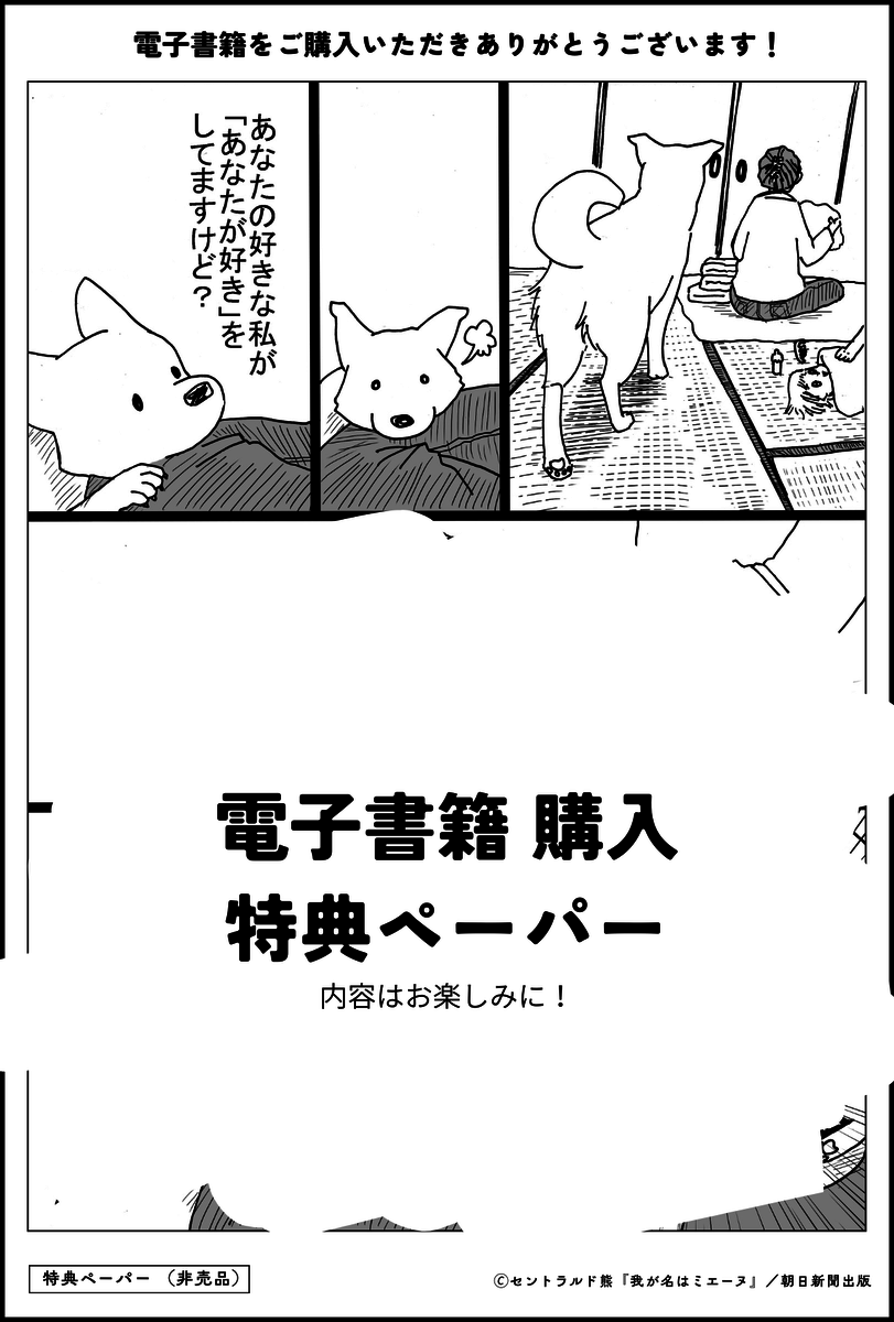 『我が名はミエーヌ』紙と電子での発売を記念した書き下ろし特典は🐈 ■応援店限定特典ペーパー ■TSUTAYA限定特典ペーパー ■電子書籍限定特典ページ 🚨特典対象店舗は近日、本アカウントや朝日新聞出版ホームページでお知らせいたします 続報をお待ちいただければ幸いです #我が名はミエーヌ pic.x.com/uU4sIEH58W