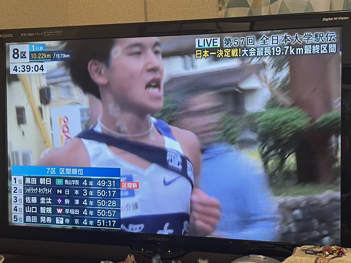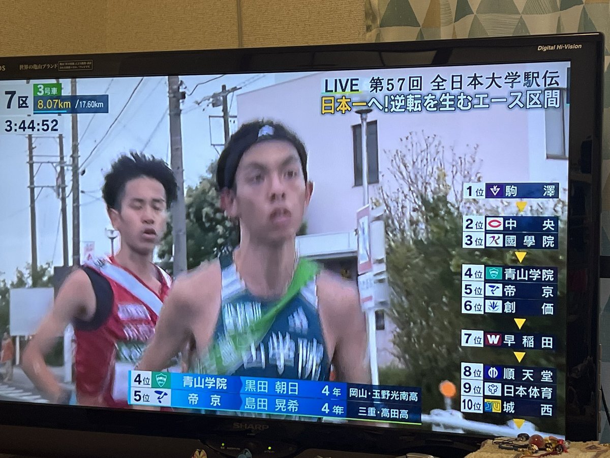 青学上がってきた。また黒田朝日に抜かれそうだ…。#全日本大学駅伝 #我が母校