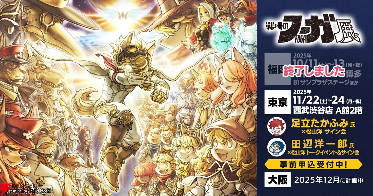 『戦場のフーガ展』東京会場では足立たかふみ×松山洋サイン会や、田辺洋一郎氏×松山洋トークイベントを実施(11/22~24) dengekionline.com/article/202511… #戦場のフーガ展 #戦場のフーガ pic.x.com/uLr5EgEsio