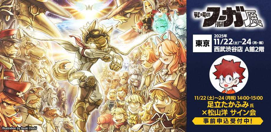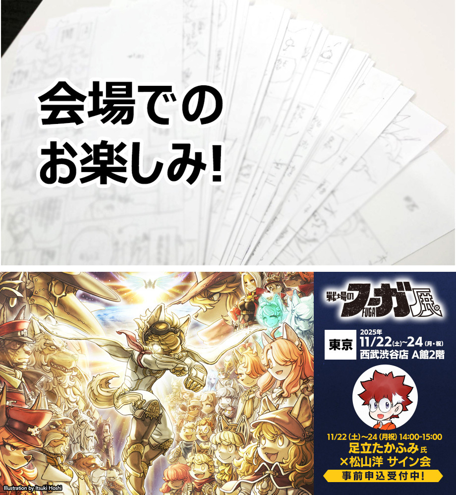 ◤シリーズ完結記念「#戦場のフーガ展」◢ ✨東京会場での限定情報も公開✨ 開催日:11月22日(土)~11月24日(月祝) 会 場:西武渋谷店 A館2階 ✨📢サイン会&トークイベントを開催!🐾✨ ※各回の事前申し込みを受け付けております。 ▼特設サイト cc2.co.jp/fuga3/fuga-ten/