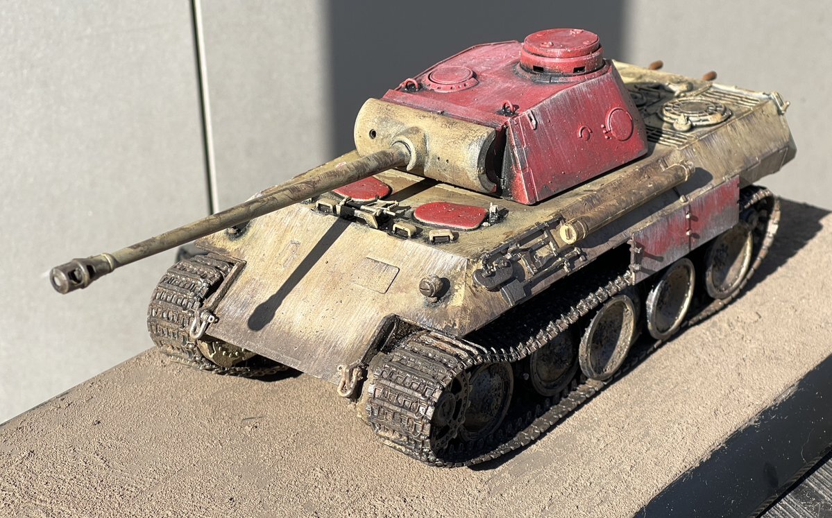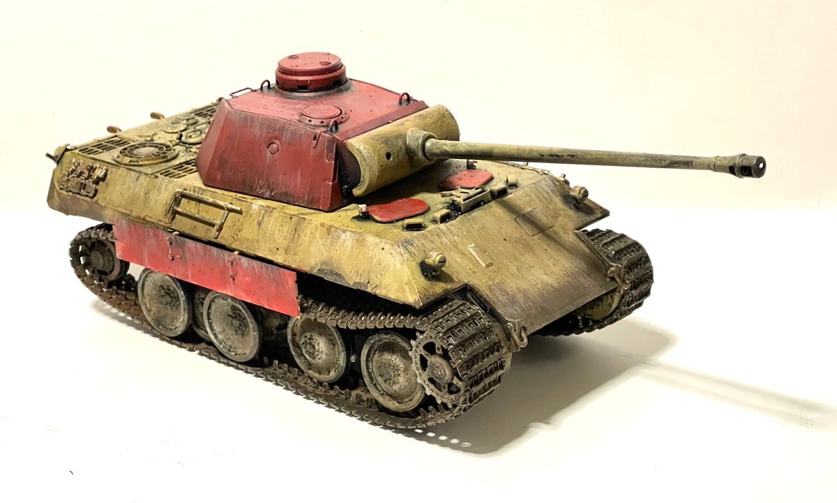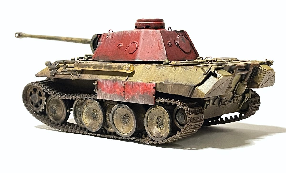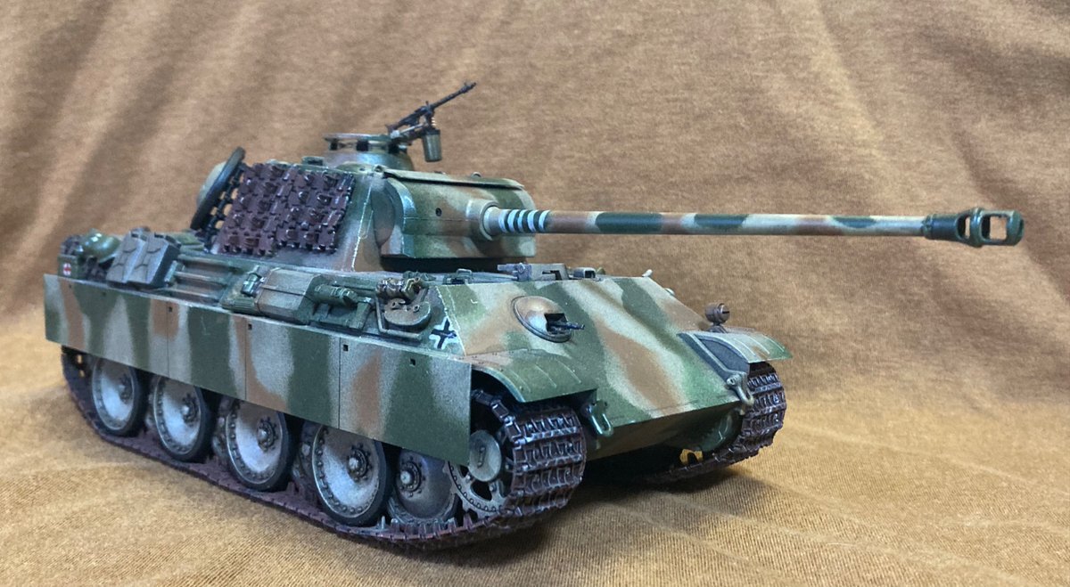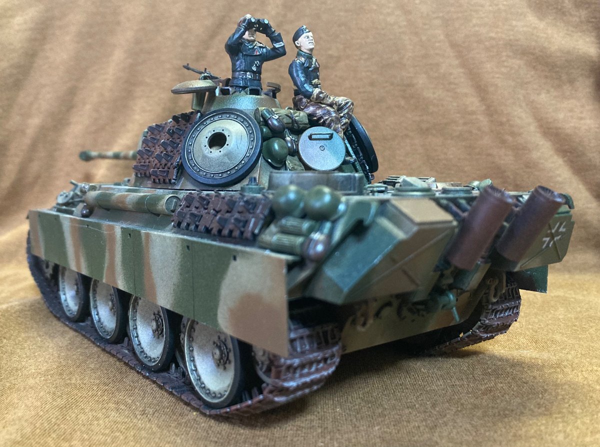 新作完成 タミヤ1/35パンサー戦車G後期型 大戦末期の雰囲気を出す為に荷物&予備履帯を盛りました☺️全て缶スプレーと筆塗り! レシピと改造点は下記リプへ #タミヤ #戦車模型 pic.x.com/QdaPueY4Fw