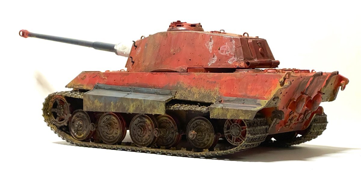( 。^ω^。)ノ【作品発表】 #アーマーモデリング の書籍2冊の作例を参考に、全て #シタデルカラー で仕上げた #AFV、 「タミヤ キングタイガー(オキサイドレッドダメージ)」です。 #タミヤ #tamiya #物撮りスケブ #戦車 #戦車模型 pic.x.com/kpNzBeyHUS