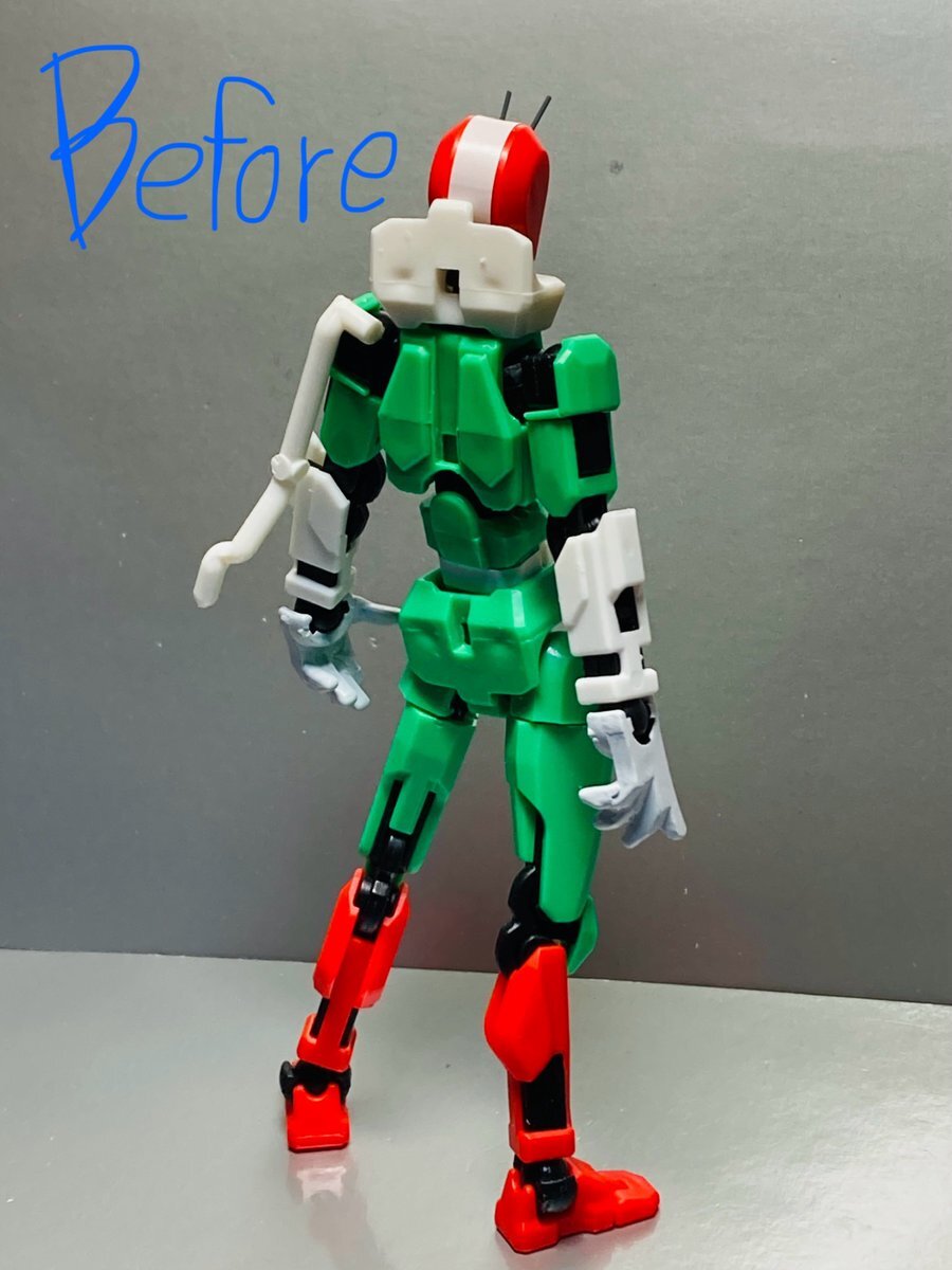 #TLをBeforeアンドafterでいっぱいに 地味?なトコロですが、マフラー(暫定はランナー)で悩んでいたのが解消されたので投稿😁 百均で何か無いか探して、良い感じのビニタイを発見👍 シワシワなのはドライヤーの熱風でキレイになりました😆🙌 #V3 #戦闘フィギュア #セリア #プラモで雑再現選手権 pic.x.com/TrceVqGZ7t