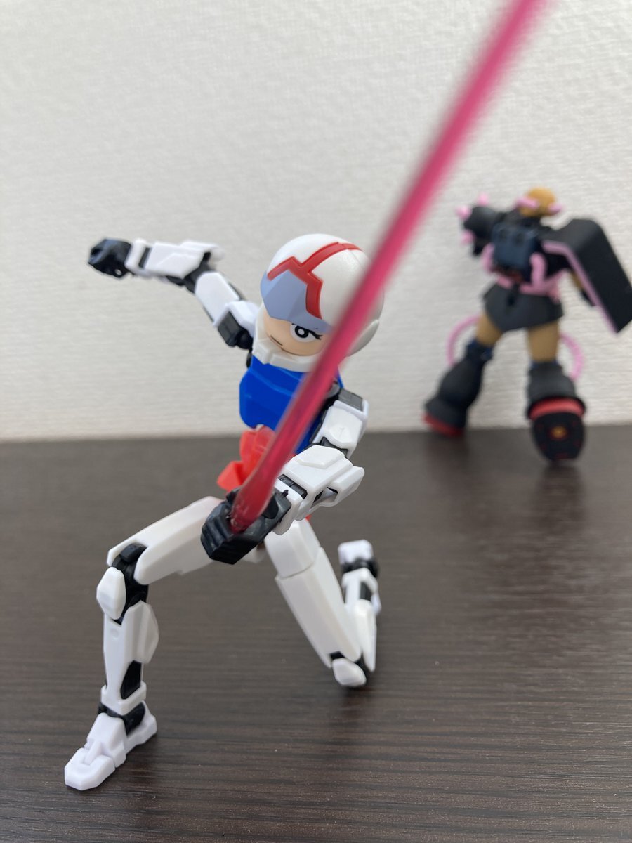 #思いついたら作るの我慢出来ないナカーマ 別口で進めてる「ズゴーグ」の影響で?自分の中でゴーグ祭りがプチ開催され…セリアフィギュアの青にちょっとシール貼ったりしてみた😁 コレならガシガシ動かして劇中以上のアクションポーズも可能😆 #セリア #戦闘フィギュア #ゴーグ #プラモで雑再現選手権 pic.x.com/Xdcs9DdSRe