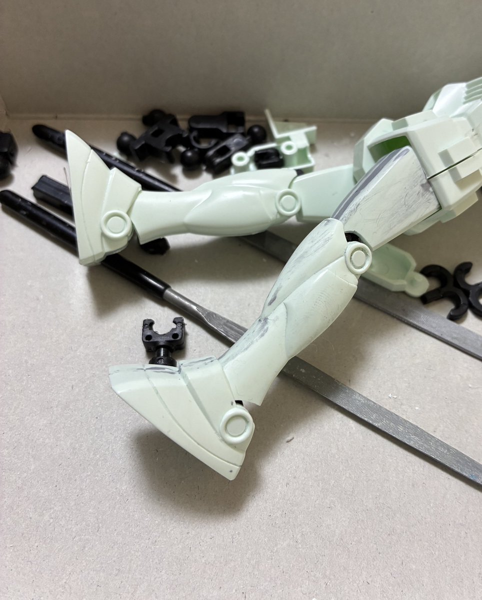 #旧キット ガンダム #戦闘フィギュア の関節を使って改造中です。 関節部分を改造してもアンクルガードが邪魔して足首が前に曲がらない… でもココにて手を付けるのは… とりあえず二の腕を回転出来るようにします。 pic.x.com/PFPlwAzSdr