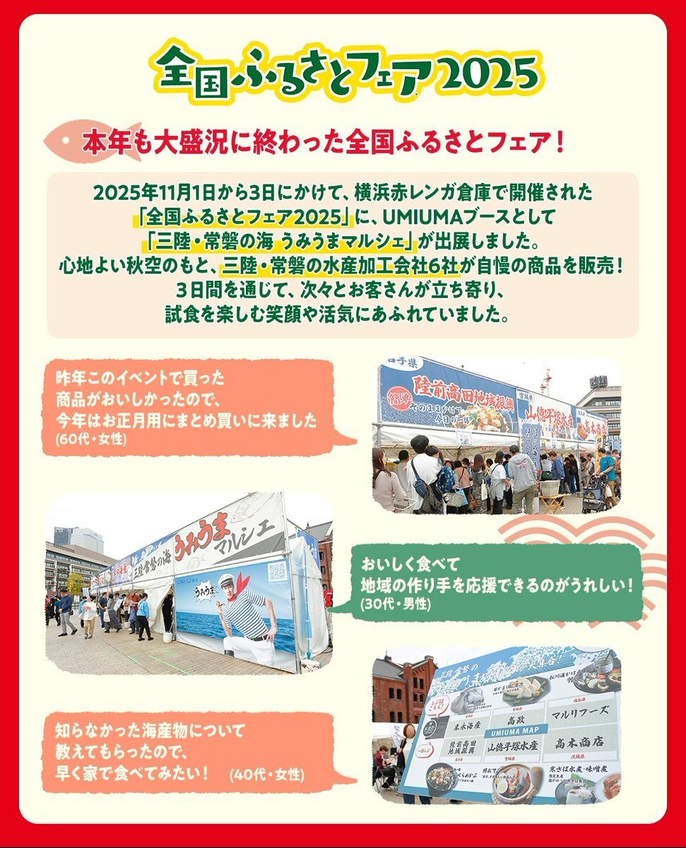 公式さんのレポート👏 うみうまフェア横浜赤レンガ倉庫 今年も2日間行きました! 昨年にも増して盛り上がっていた感じがしましたね😃 戸塚純貴さんのパネル前で写真も撮っていただきました🙆 来年もぜひ! #ふるさとフェア横浜赤レンガ倉庫 #うみうまマルシェ #戸塚純貴 instagram.com/p/DRk9qZzj6Sa/… pic.x.com/gSErEkoPql