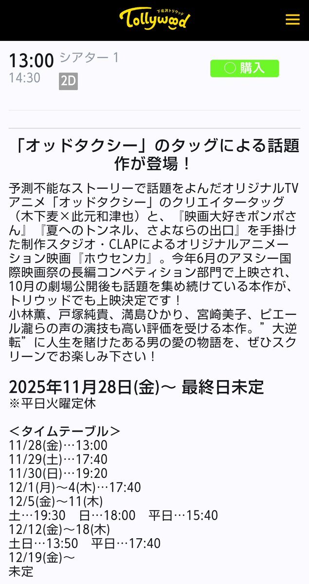 「オッドタクシー」のタッグによる話題作が登場! 『ホウセンカ』 2025/11/28(金)~ 最終日未定 ※平日火曜定休 #ホウセンカ tollywood.jp/coming/690307e…