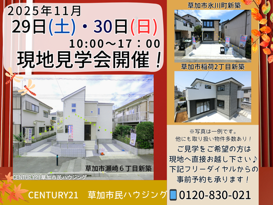 【11月29日(土)・30日(日)】 #草加市民ハウジング 本店は 今週末より2日間、現地見学会を開催します estate.century21soka.com/list/sale/esta… 開催時間:10:00~17:00 要相談にて時間外・平日もご内覧頂けます♪ ぜひお気軽にご利用下さい😊 #草加市 #八潮市 #足立区 #不動産 #戸建て #マンション #売地 #相続 pic.x.com/k9gB1MNTRi