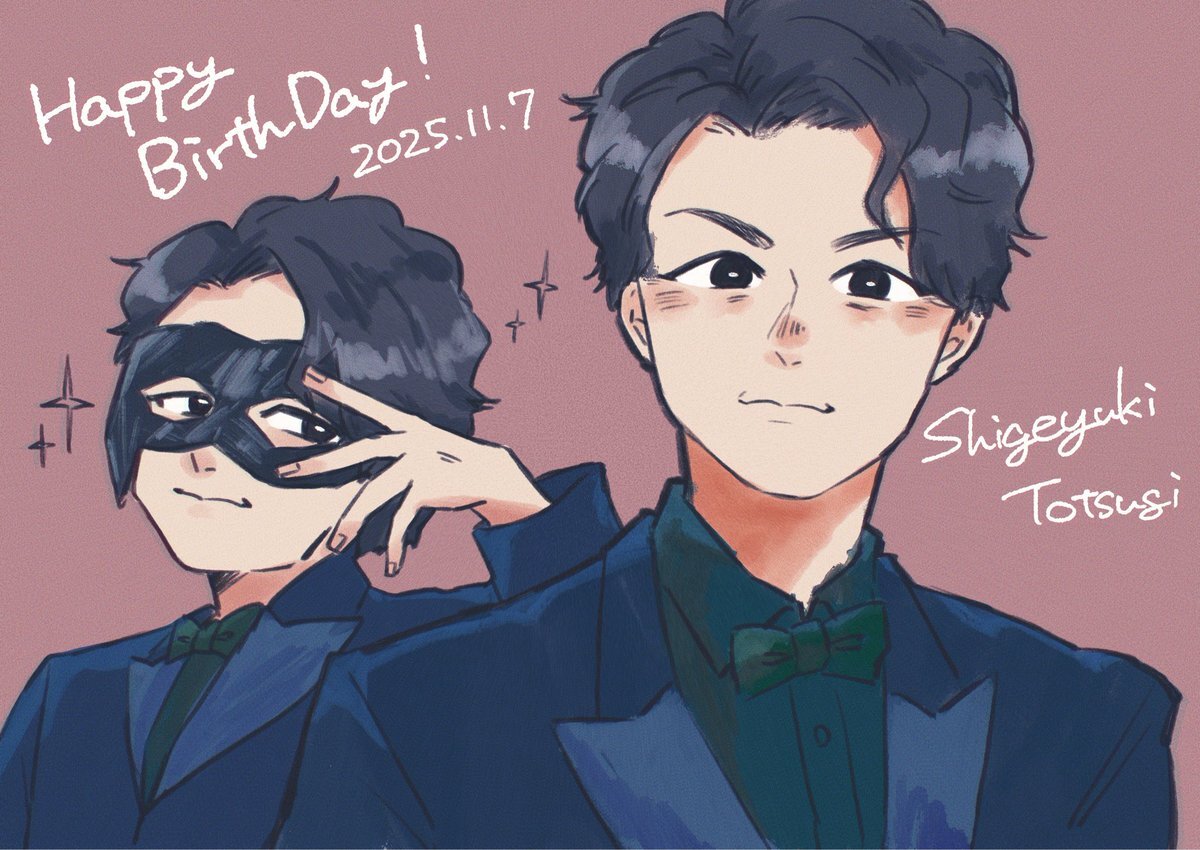 シゲちゃん誕絵を描くならこうなるよねってことで目元の差分です。差分作成しくじらなくて良かった…🫠仮面の模様それっぽく出てて安心