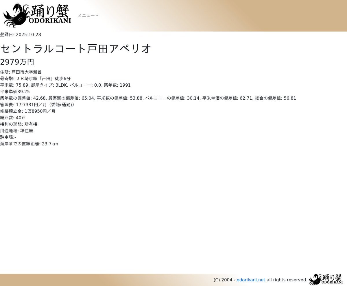 [おすすめマンション] セントラルコート戸田アペリオ -- 2979万円 / 登録日: 2025-10-22 / 駅の距離偏差値:65.06 / 総合偏差値:56.87 / 権利の形態:所有権 re.odorikani.net/m/e/78636223.p… #踊り蟹 #戸田駅 #戸田市大字新曽 pic.x.com/fGZxcJs5Ye