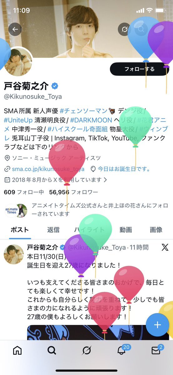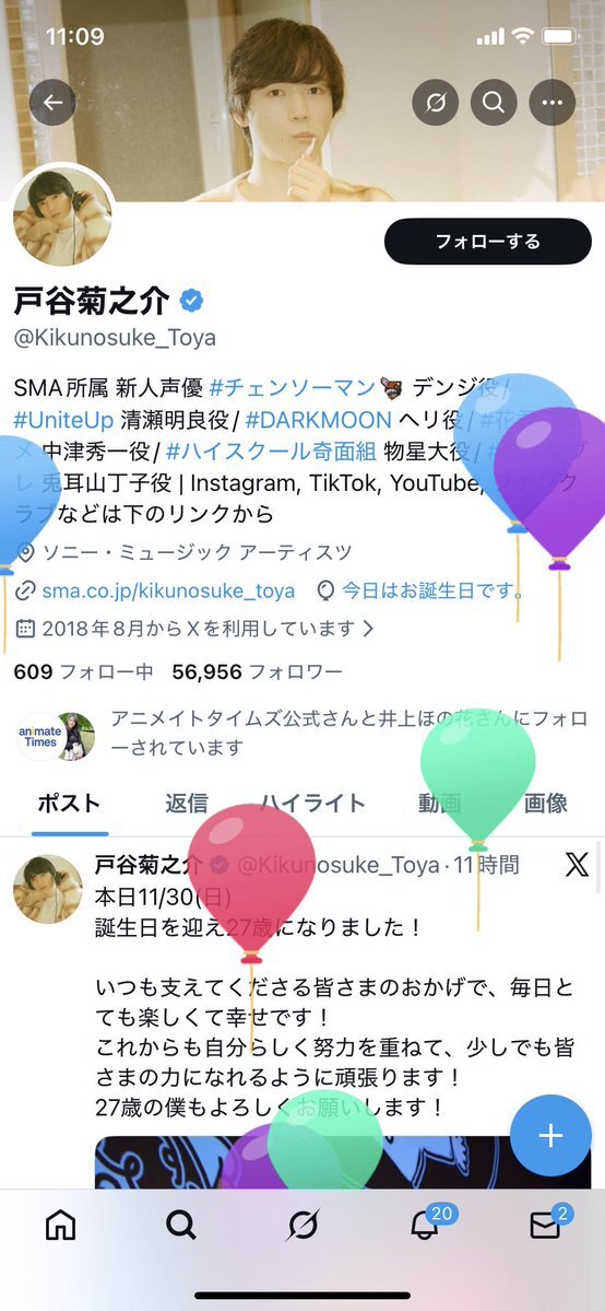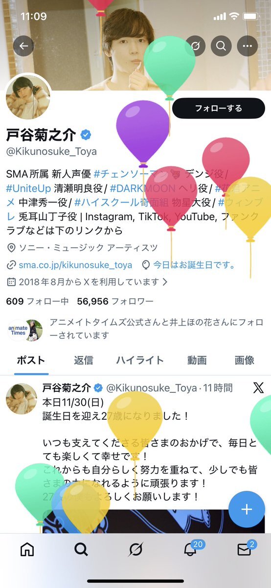 お誕生日おめでとうございます♡ 今日のインライ楽しみ〜😊 #戸谷菊之介 #戸谷菊之介生誕祭2025 x.com/kikunosuke_toy…