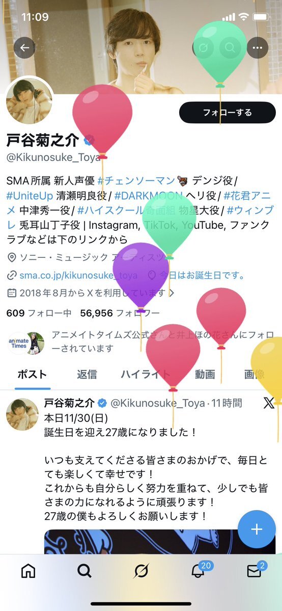 本日11/30(日) 誕生日を迎え27歳になりました! いつも支えてくださる皆さまのおかげで、毎日とても楽しくて幸せです! これからも自分らしく努力を重ねて、少しでも皆さまの力になれるように頑張ります! 27歳の僕もよろしくお願いします!