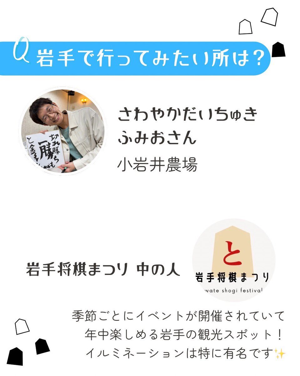 ゲストの先生方にお答えいただく 一問一答🐯 今回のクエスチョンは 「岩手で行ってみたい所は?」 本日は... さわやかだいちゅき ふみおさんです🐮 岩手将棋まつりまで あと21日✨ #戸辺誠七段 #山本博志五段 #小山怜央四段 #さわやかだいちゅきふみおさん #将棋 pic.x.com/38eTI0Bnuz