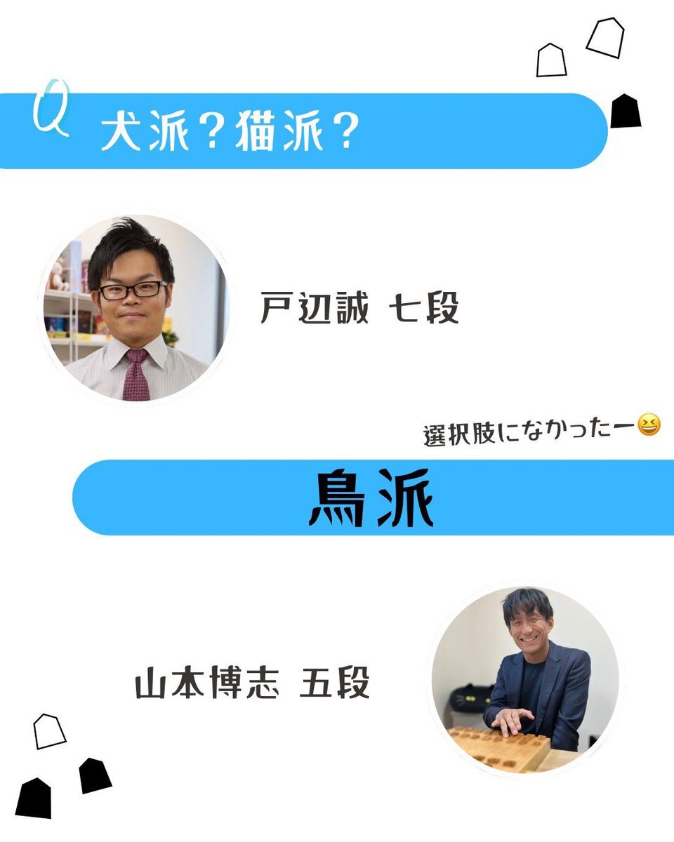 ゲストの先生方にお答えいただく 一問一答🐯 本日は... このお2人🦜 今回のクエスチョンは 「犬派?🐶猫派?🐱」 なのですが、お2人が偶然にも まさかの回答でした😂 #戸辺誠七段 #山本博志五段 #小山怜央四段 #さわやかだいちゅきふみおさん #将棋 pic.x.com/PYygkjhcJe